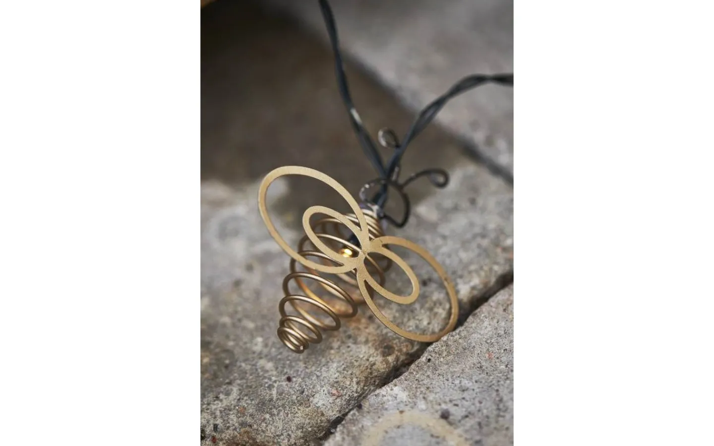 Solcellsdriven dekorationsslinga med 8 stycken bronsfärgade insekter.