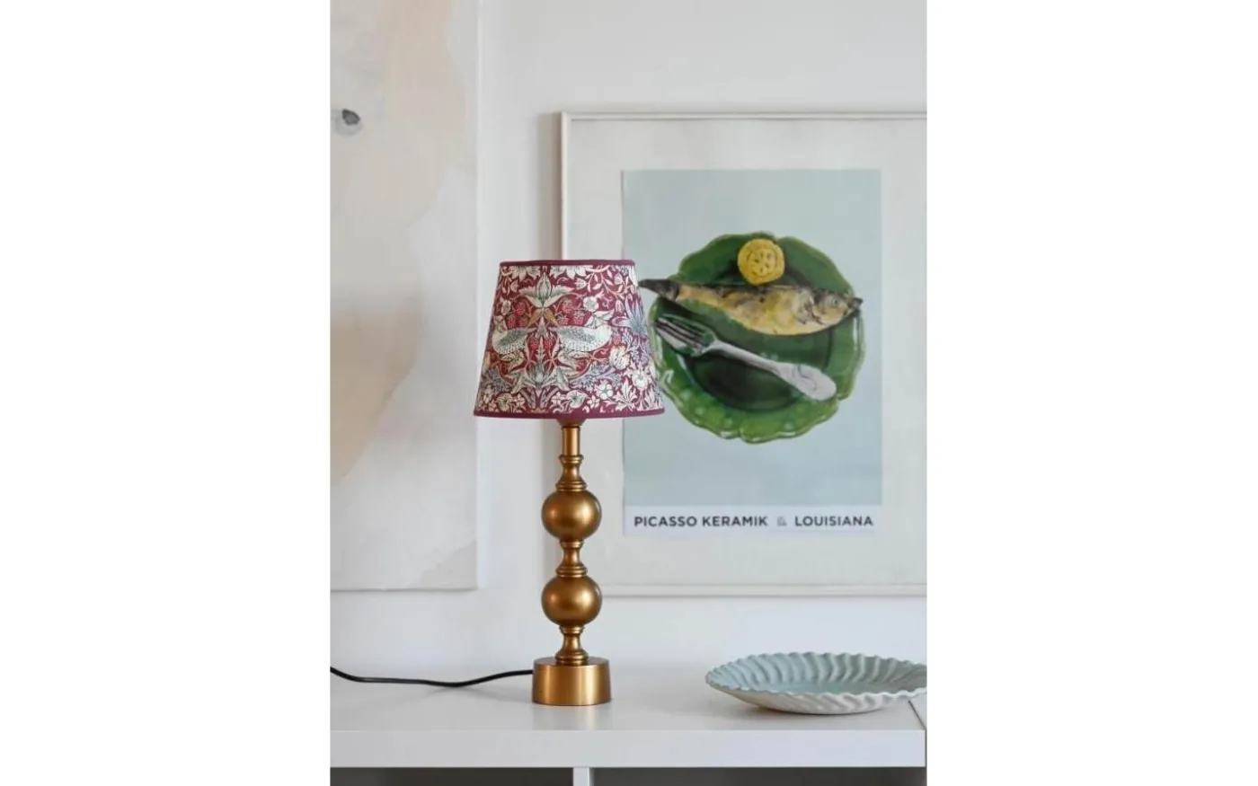 Strawberry Thief Lampskärm Ø17cm i färgen Plum från William Morris. Den har det klassiska mönstret med fåglar och bär, här i en djup plommonlila ton som skapar en elegant och tidlös känsla. En dekorativ lampskärm som passar utmärkt till mindre lampfötter och ger rummet ett stilfullt blickfång.