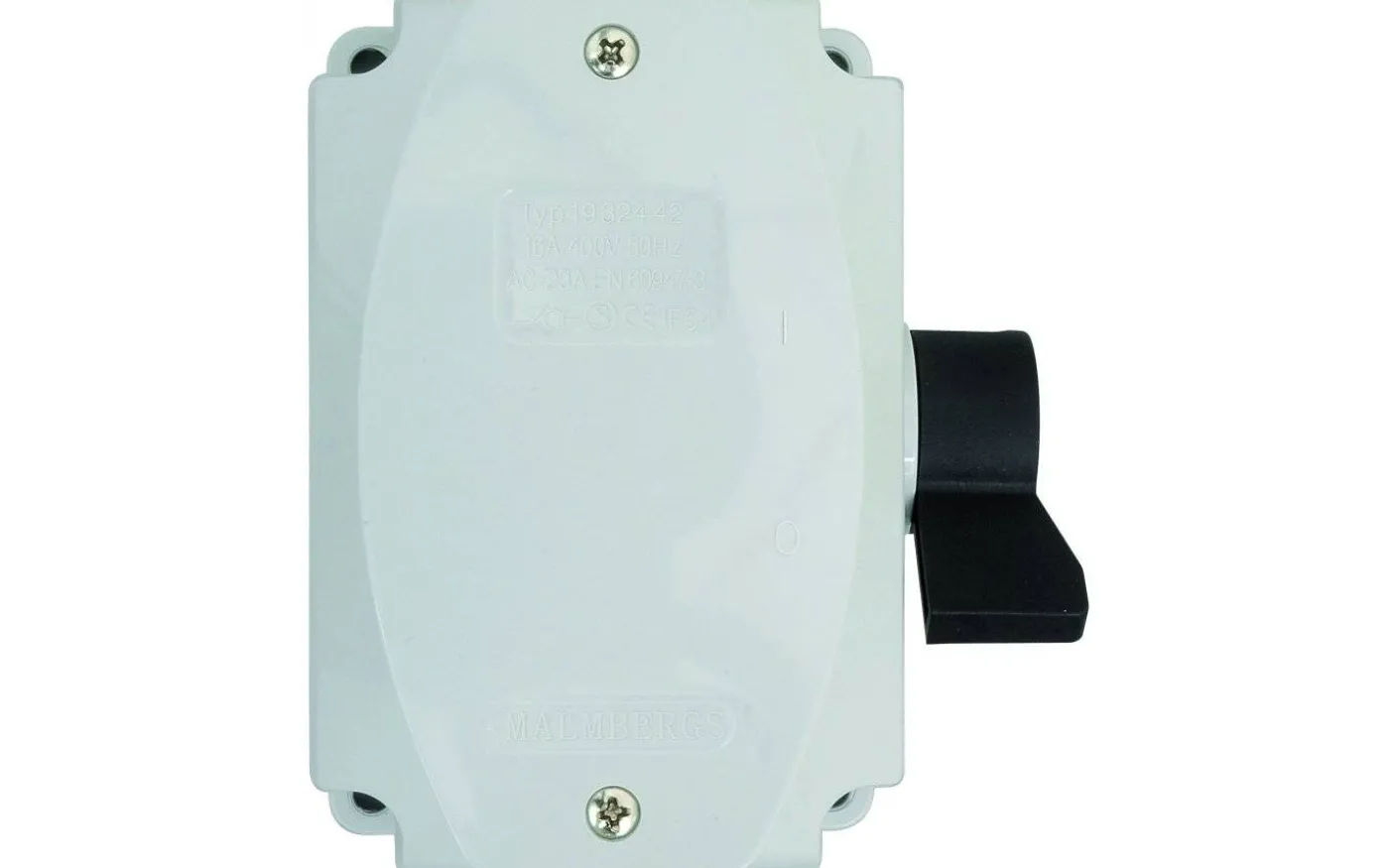 4-polig 16A strömställare med hjälpkontakt av polykarbonat. Sköljtät med låsbart vred.