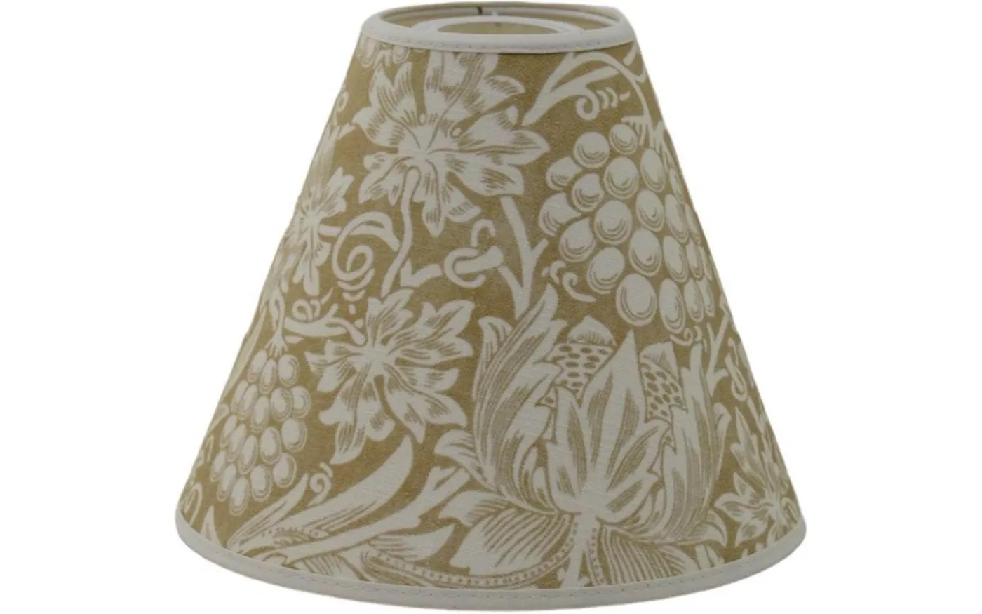 Sunflower Toppringsskärm Ø22cm i färgen Ochre från William Morris. En dekorativ lampskärm med det ikoniska Sunflower-mönstret i en varm ockraton. Anpassad för golvlampor med toppring, där den sprider ett mjukt ljus och samtidigt blir en elegant och tidlös inredningsdetalj i rummet.