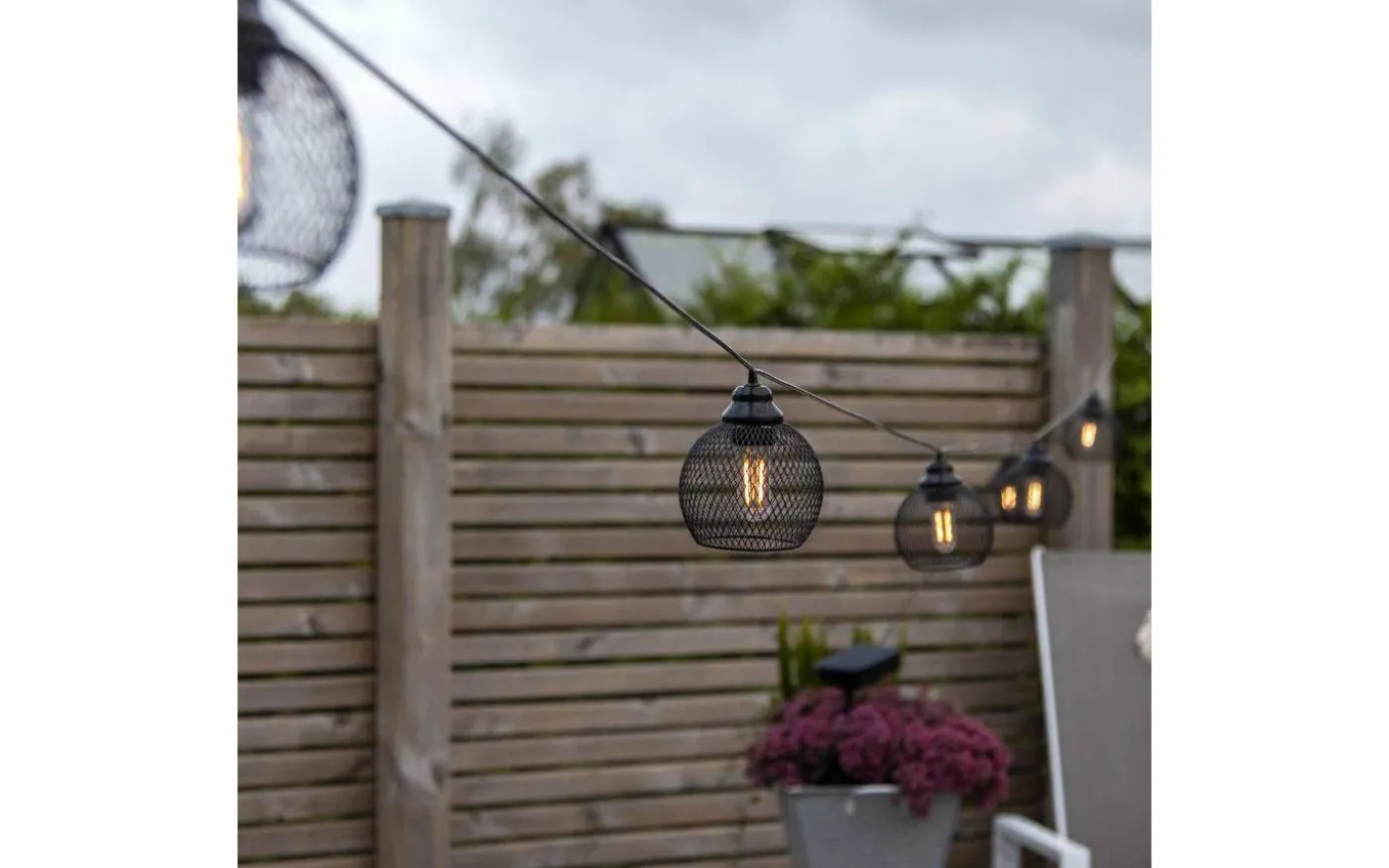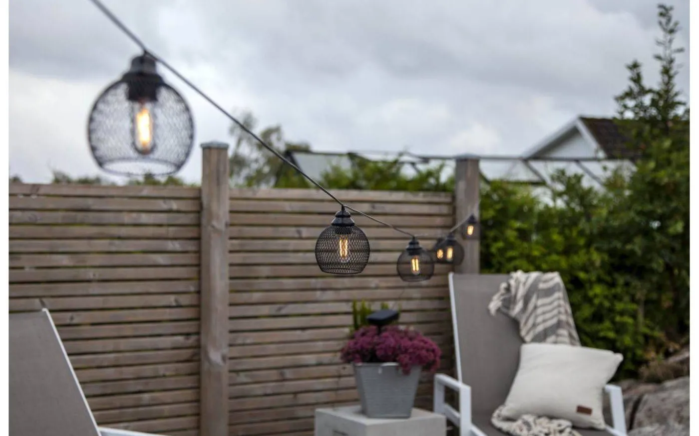 Vackra sunlight ljusslinga från välkända Star Trading är en solcellsdriven ljusslinga med 8st dekorationer av metallnät som lyser upp i ett härligt varmvitt ljussken. Avståndet mellan metallhattarna är 1m. Ljusslingan är lättplacerad i en trädgård eller på balkongen.