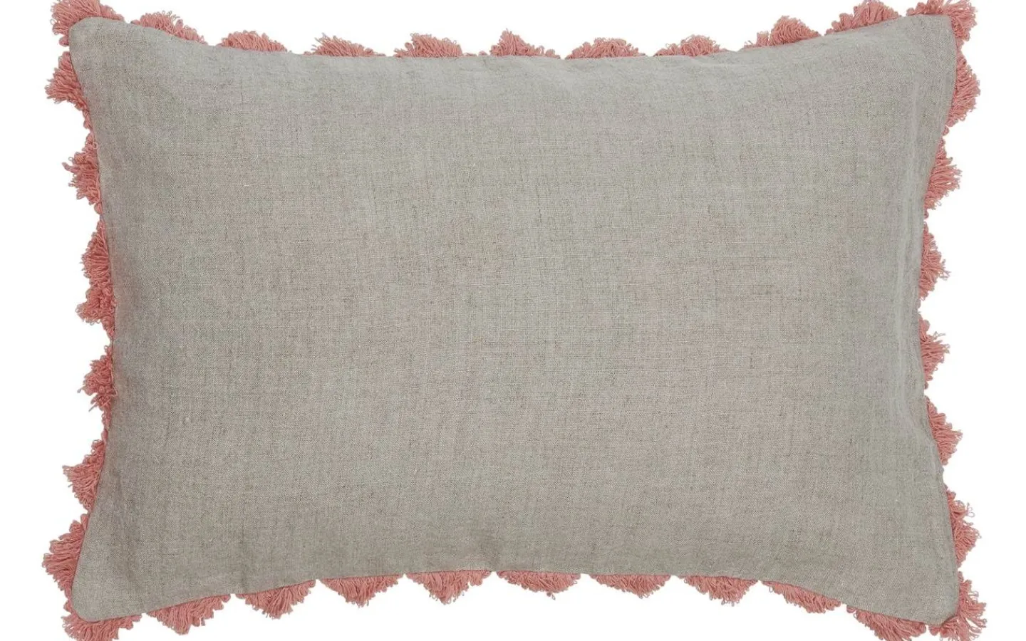 Kuddfodral i lätt tumlat linne med dekorativa fransar i avvikande färg. Linet är av hög kvalitet och har odlats i västra delarna av Europa. Dold dragkedja på baksidan. Mått 40x60cm. Innerkudde köpes separat.