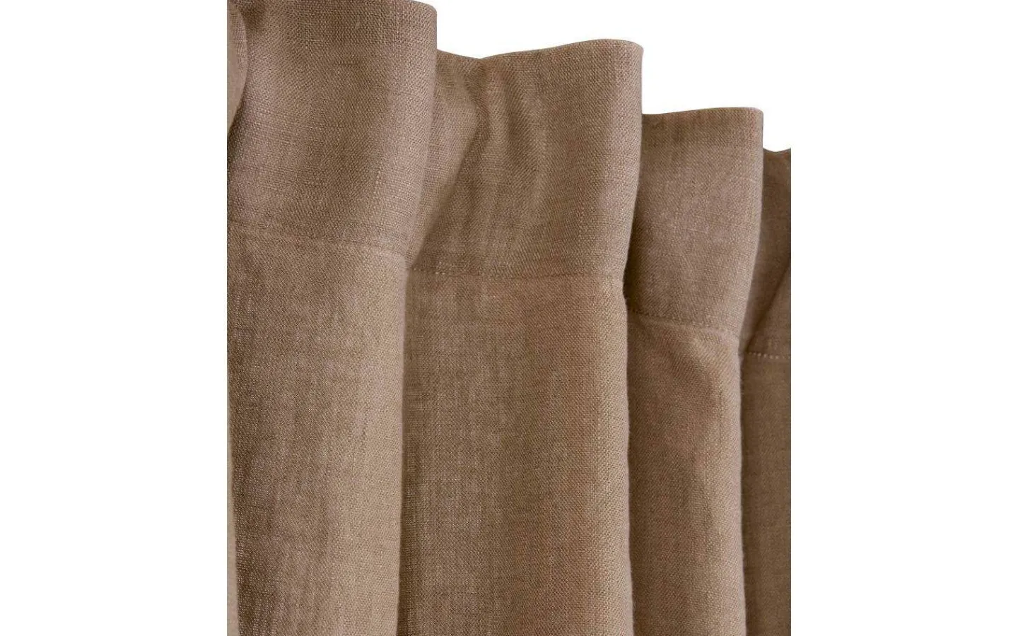 Färdigsydd kappa i en tumlad linnekvalitet. Har multiband i ovankant, fållade långsidor och nederkant. Multibandet är en flexibel lösning som gör att gardinen kan hängas upp antingen med fingerkrokar, räkor eller direkt på en stång beroende på vilken typ av veck och vilket fall man vill ha på gardinen.