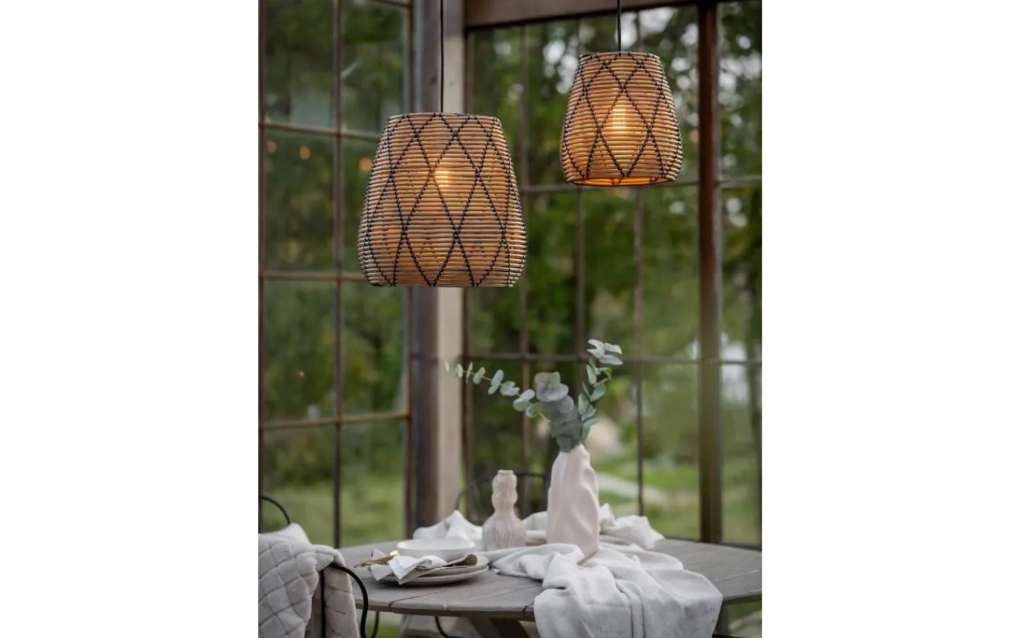 Lollo takskärm från välkända Pr Home är en takskärm för utomhusbruk. Lampskärmen är tillverkad i en kraftigare naturfärgad konstrotting flätad med ett mönster i svart. Konstrotting är ett tåligt material som klarar väder och vind.