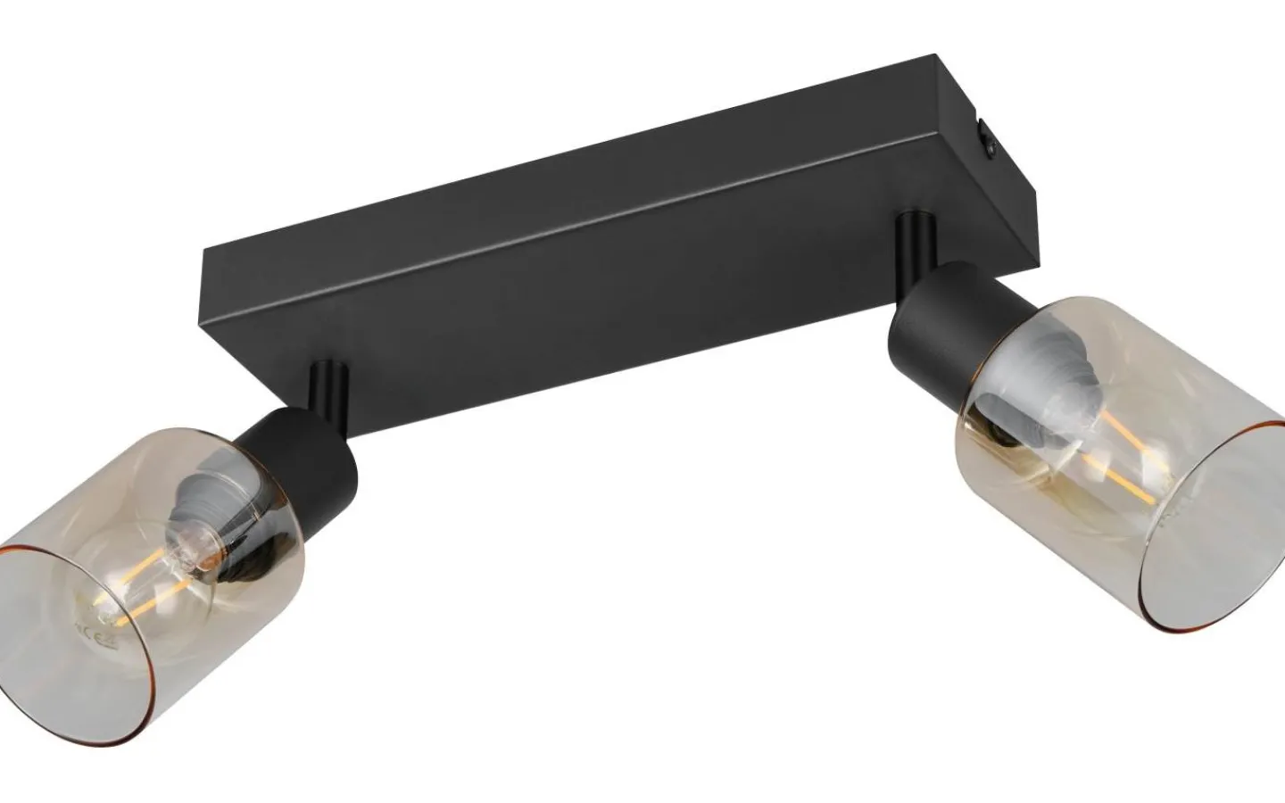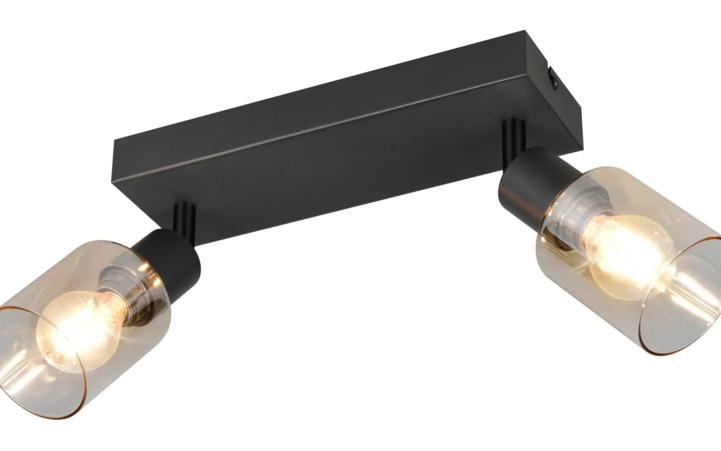 Takspot Med 2 Lampor<Reality Cadiz Spotlight 2-delad E14 matt svart/bärnsten