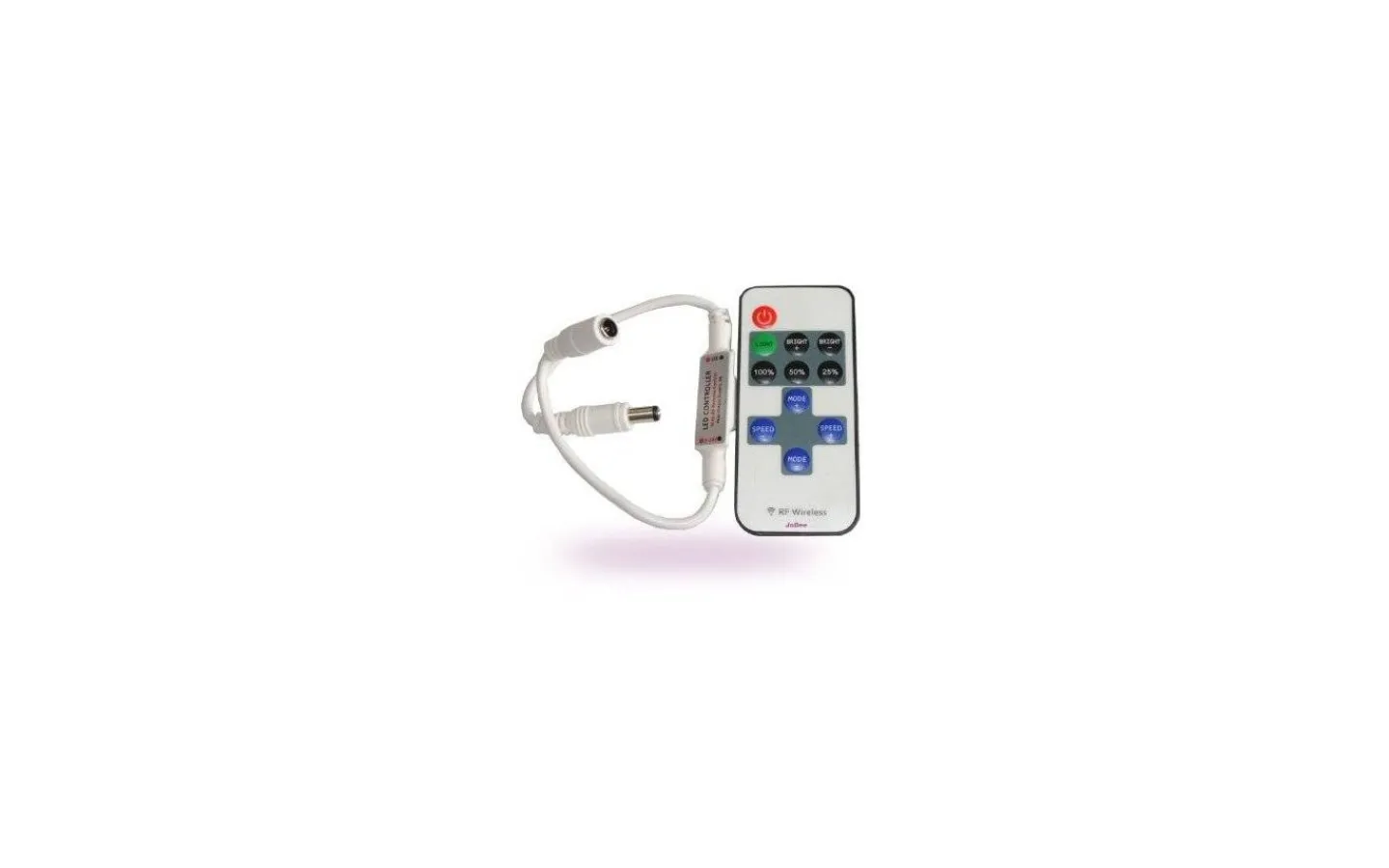 Denna trådlösa DC-dimmer ansluts enkelt mellan transformatorn och ledlisten via snabbkontakter. Klarar upp till 10m 4,8W ledlist och 5m 9,6W ledstripes