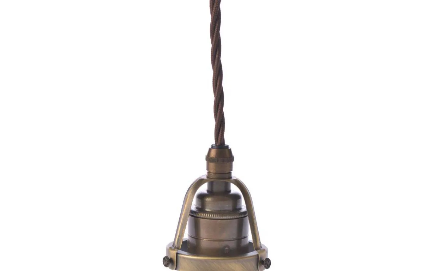 Färgen på texilkabeln varierar, upphänget i nickel har grå sladd, mässing har svart och antikfärgat upphäng har brun sladd.