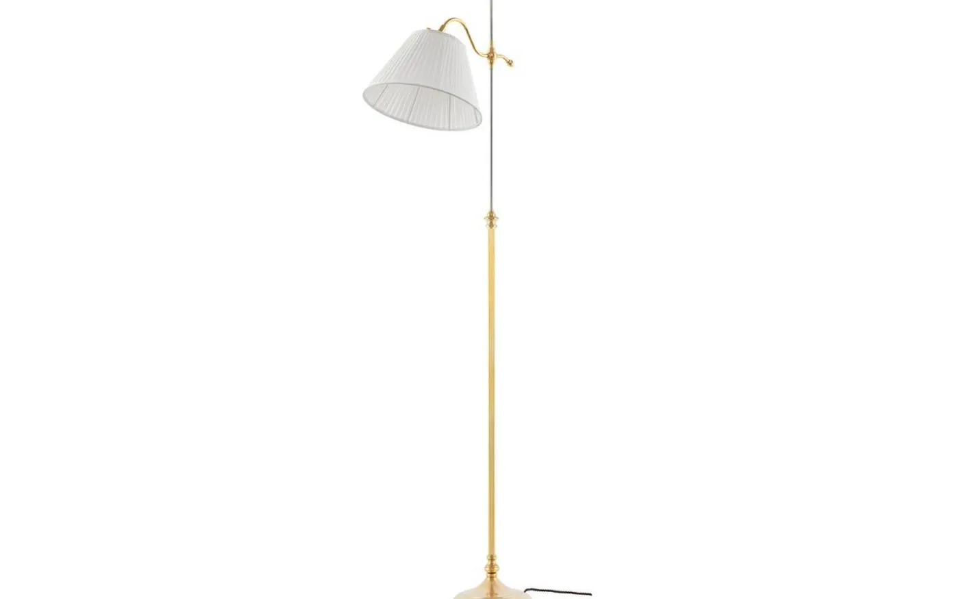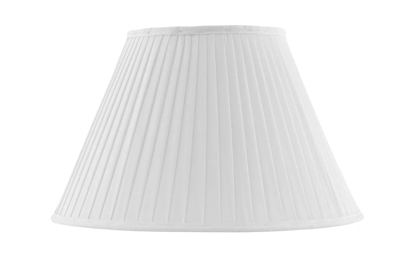 Klassisk textilskärm i veckat bomullstyg med ett ringfäste för fäste på gängad lamphållare eller i den mässingslyra som förkommer i våra bord och golvlampor. Vit bomullstextil 18×30 cm Lyra med 45 mm hål