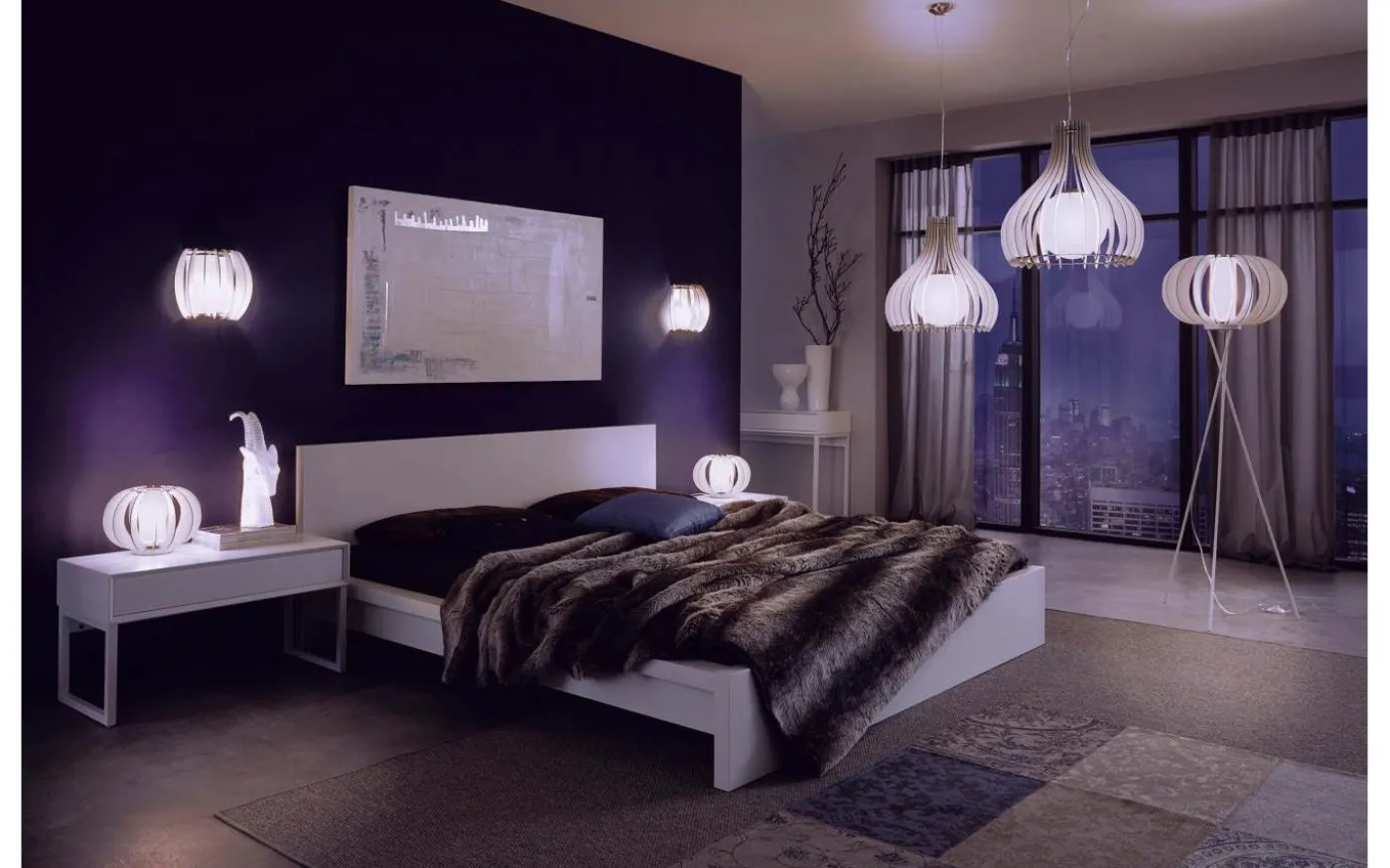 Taklampan TINDORI har en rundad lampskärm gjord av vita träsegment med en baldakin i matt nickelmetall. Den inre vita glaskulan kompletterar ljusets moderna utseende och ger en attraktiv belysning. Med en diameter på 50 cm smälter taklampan sömlöst in i moderna inredningsstilar och ger en välkomnande belysning i vardagsrummet eller ovanför bordet i matsalen.