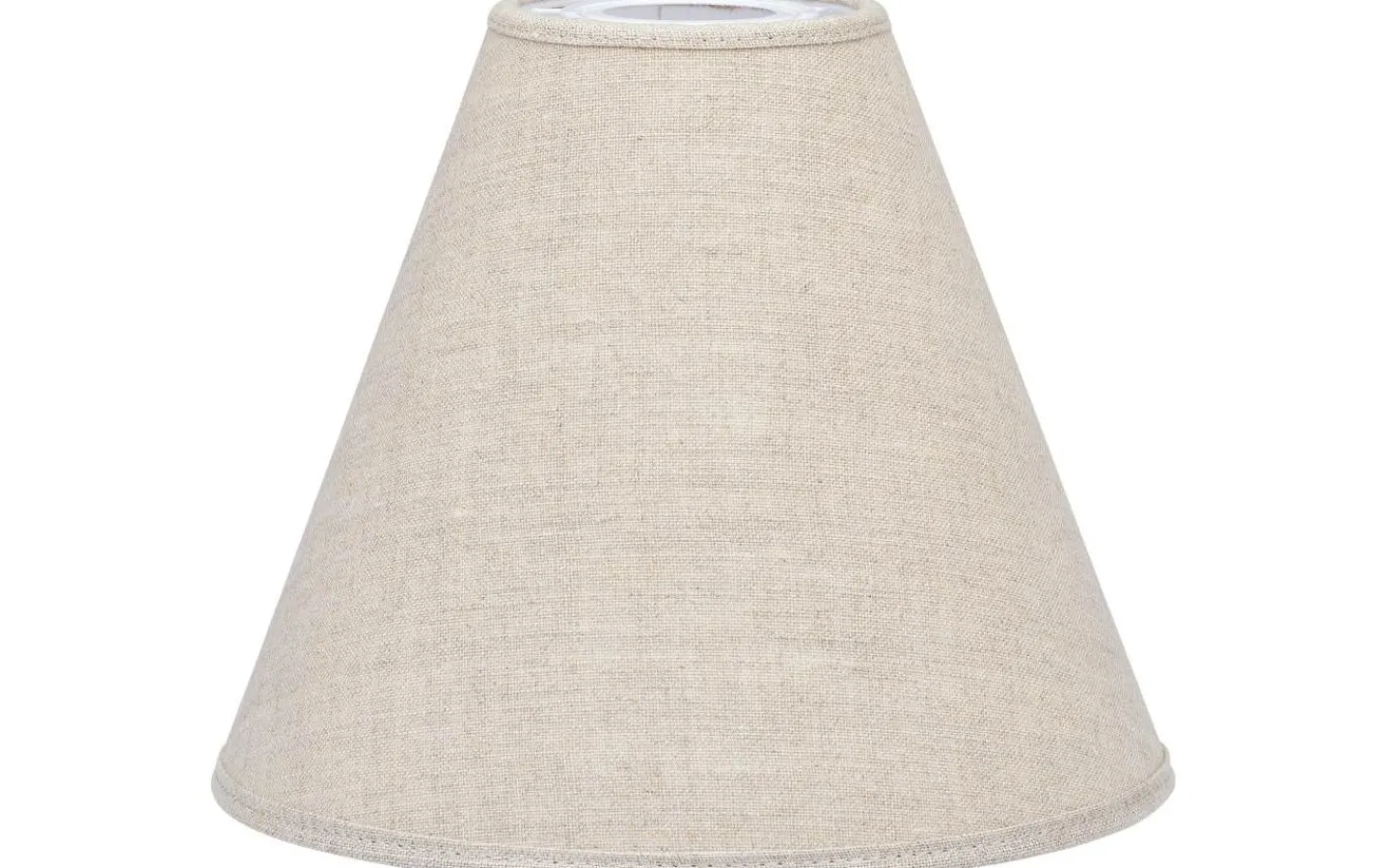 Toppringsskärmen med ett E27-ringfäste från PR Home. Denna lampskärm är tillverkad i linnetyg med vit insida och matchande kantband i ovan-/ och underkant.
