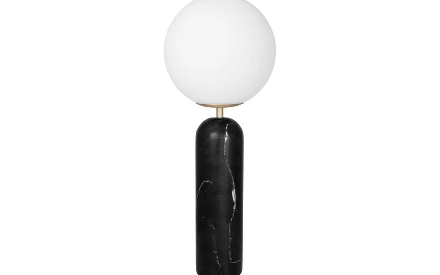 Vackra bordslampan Torrano är designad av formgivaren Patrik Hall, för välkända svenska varumärket Globen Lighting. Denna modell av Torrano har fot i svart, solid marmor med inslag av ljusare kontraster.