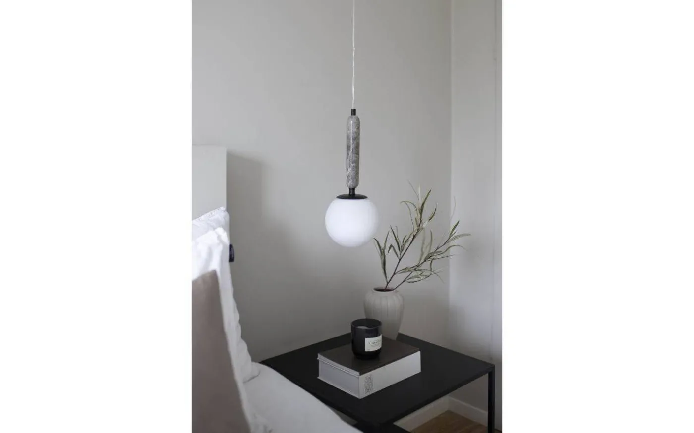 Härliga Torrano taklampa från Globen Lighting i vacker solid marmor och skapar en lyxig och modern inredningsdetalj i hemmet. Taklampan är tillverkad av marmor med vit marmorering, detaljer i svart metall som avslutas med en matt vit glaskupa.