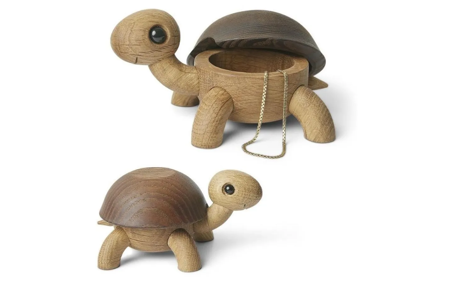 Trädekoration Sköldpadda. Färg: Natur. Måttl: Bredd 7 cm, Längd 11 cm, Höjd 5 cm. Material: FSC Ek, FSC Karboniserad Ask, Plast. Speedy är en lekfull och förtjusande sköldpaddsunge. Figuren är designad av Chresten Sommer och är ett lysande exempel på hans förmåga att skapa verklighetstrogna porträtt av djur. Sköldpaddsungen Speedy är inte bara en söt dekoration, utan gömmer också en skål under sitt skal. Den dekorativa träfiguren kan användas till barnets första tand eller att förvara dina smycken eller andra småsaker i. Mått: Bredd: 7 cm, Längd: 11 cm, Höjd: 5 cm. Material: FSC-märkt ek, FSC-märkt karboniserad ask, plast. Underhåll: Speedy är ingen leksak och får inte användas av barn. Figuren är en unik handgjord och handmonterad träprodukt, och det kan därför förekomma variationer från produkt till produkt. Rengör med en fuktig trasa. Använd bivax regelbundet på alla våra träprodukter för att de ska hålla längre.