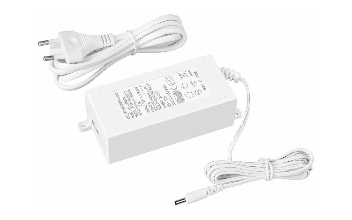 Levereras med 1,5 m kabel på primärsidan och 1,5 m kabel på sekundärsidan. Ej dimbar.