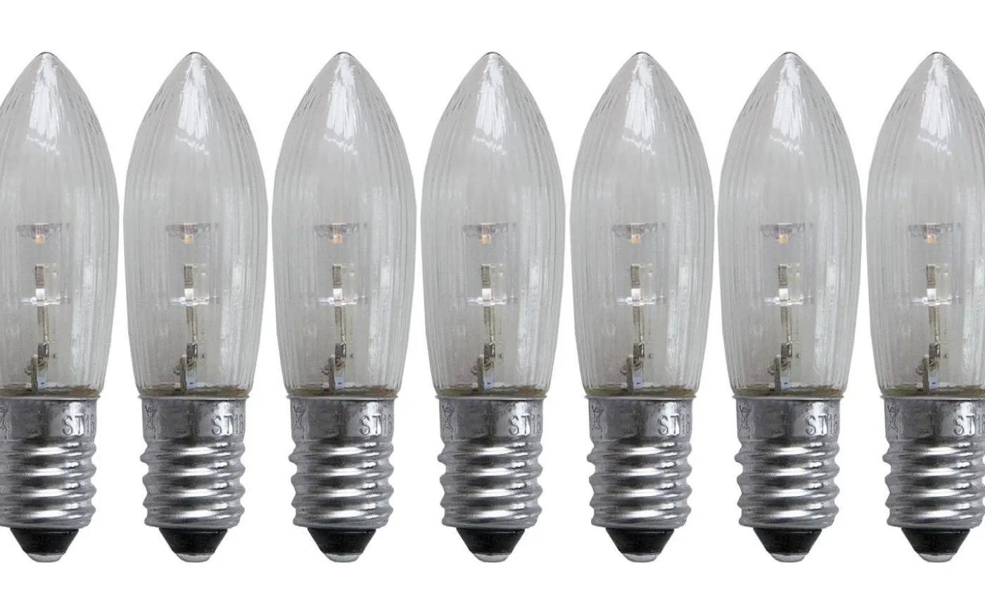 7-pack reservlampor med LED, klart glas, E10 sockel och 10-55V.