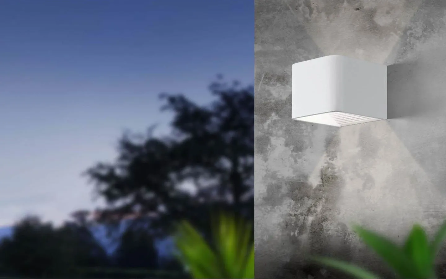 DONINNI 1 exteriör LED-vägglampa har en fyrkantig vit aluminiumstomme. Detta upp- och nedljus kommer att ge elegant, indirekt belysning till utsidan av ditt hem. De integrerade lysdioderna bakom den vita plastljuspanelen ger ett behagligt varmvitt ljus. Med en modern och minimalistisk design smälter vägglampan in i nästan alla utomhusutrymmen, produkten är lämplig för utomhusbruk på grund av dess IP55-skydd mot damm och lågtrycksvattenstrålar.