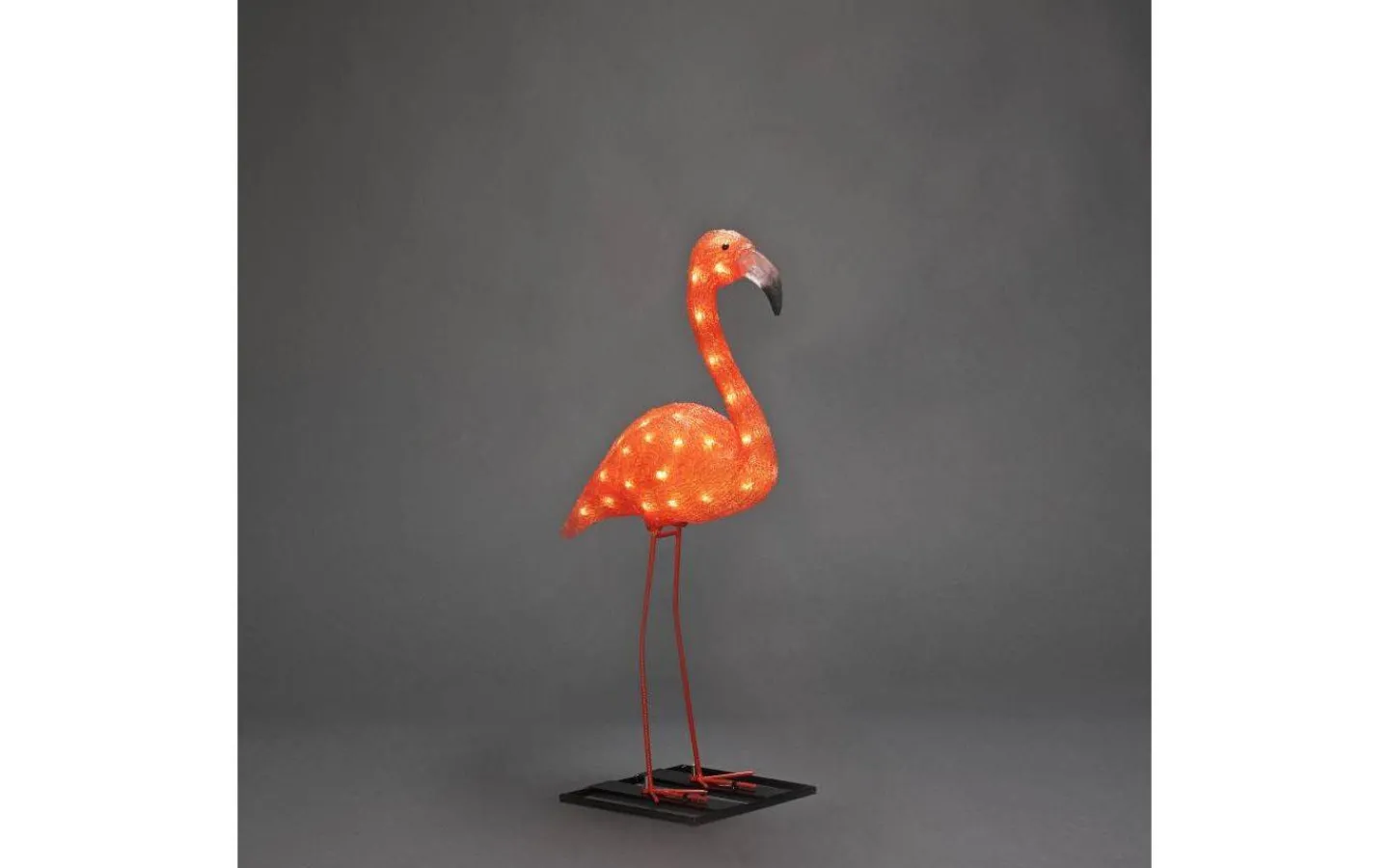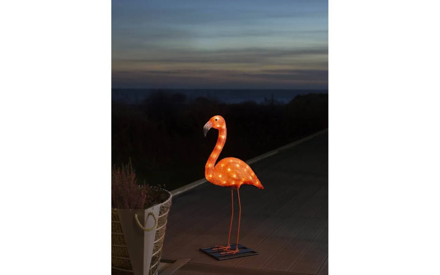 Flamingo utomhusdekoration från Konstsmide är av akryl med 48st små LED-lampor som lyser i varmvitt ljussken. Denna ståtliga flamingo är 70cm hög och blir garanterat en ögonfångare att ha i trädgården.