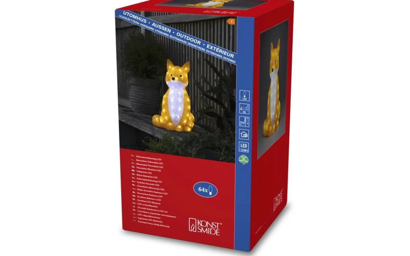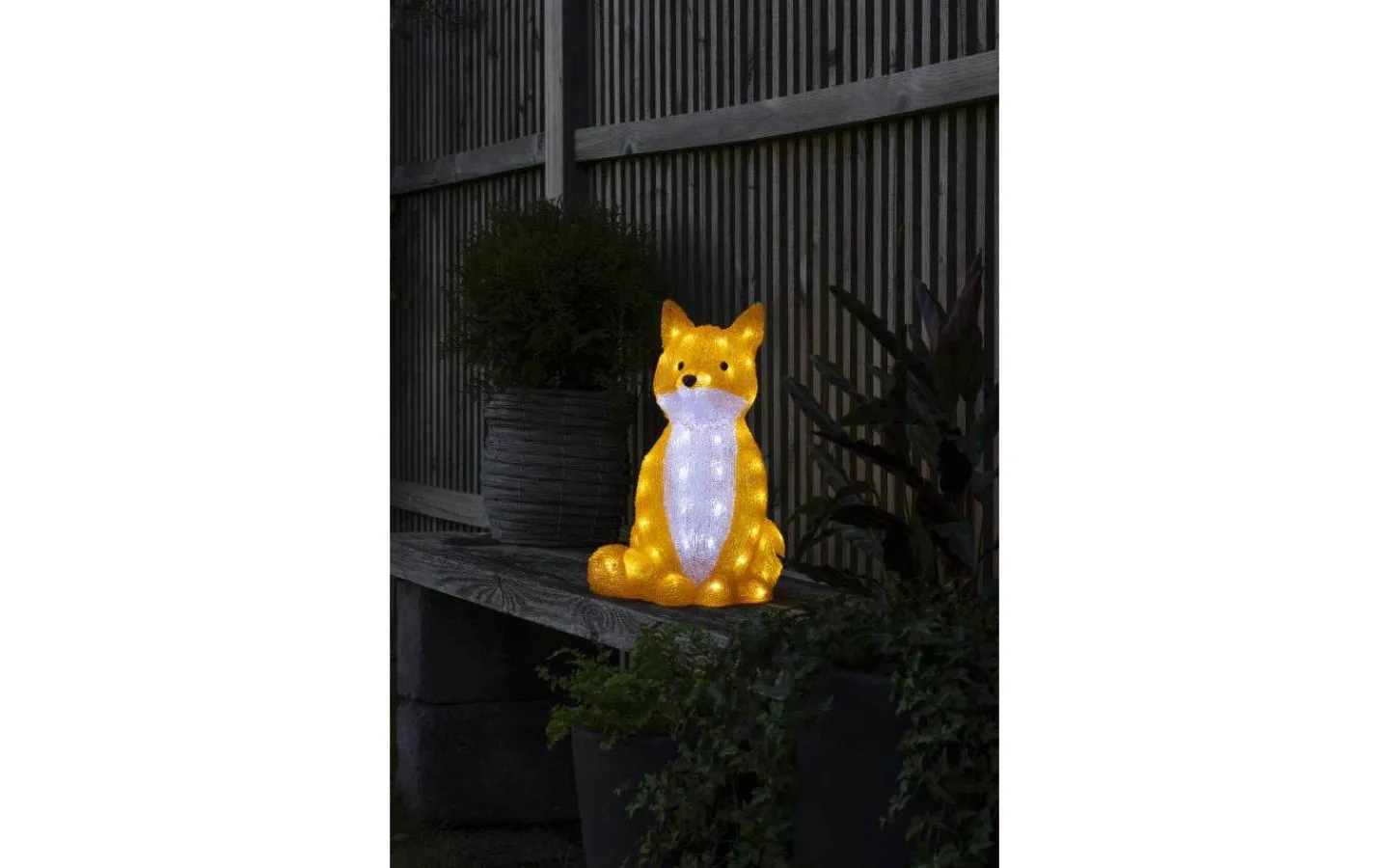 Härlig räv i akryl från välkända Konstsmide. Räven passar utmärkt att placera utomhus och hjälper dig att skapa en härlig och rolig utemiljö!