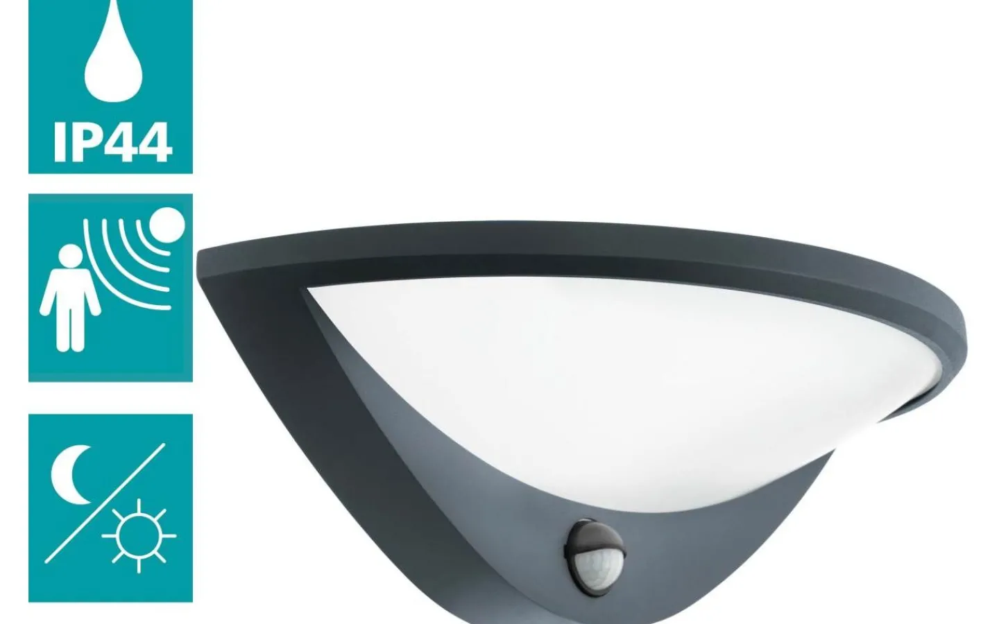 BELCREDA exteriör LED-vägglampa är gjord av aluminium i antracitfinish med en vit plastkåpa som böjs nedåt. Lampan är lämplig för utomhusbruk tack vare sitt IP44-skydd mot sprutvatten. Den yttre vägglampan har också en integrerad rörelsesensor som tänds automatiskt, lyser upp områden med dålig sikt och avskräcker oönskade besökare. Den integrerade skymningssensorn mäter omgivande ljusnivå för att säkerställa att ljuset bara tänds när det behövs. Med sin minimalistiska design smälter produkten sömlöst in i alla utomhusområden, inklusive ingången till huset eller terrassen.