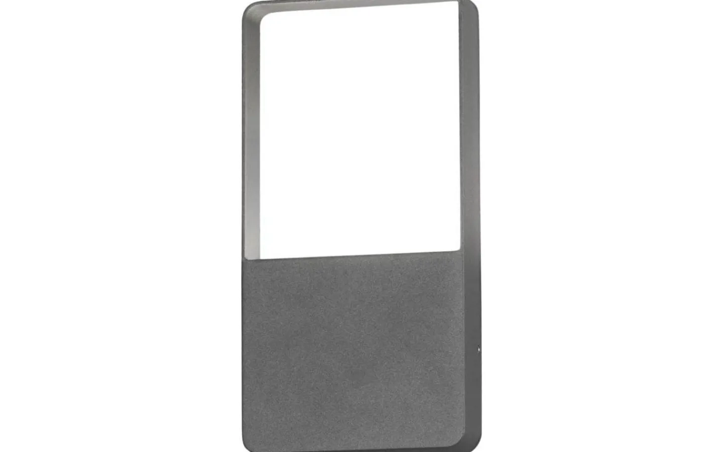 Denna stilrena vägglampa är tillverkad av aluminium i en härlig antracitgrå färg. Den inbyggda ljuskällan avger ett behagligt, varmvitt sken som reflekteras vackert mot fasaden. Smidig installation med 230V.