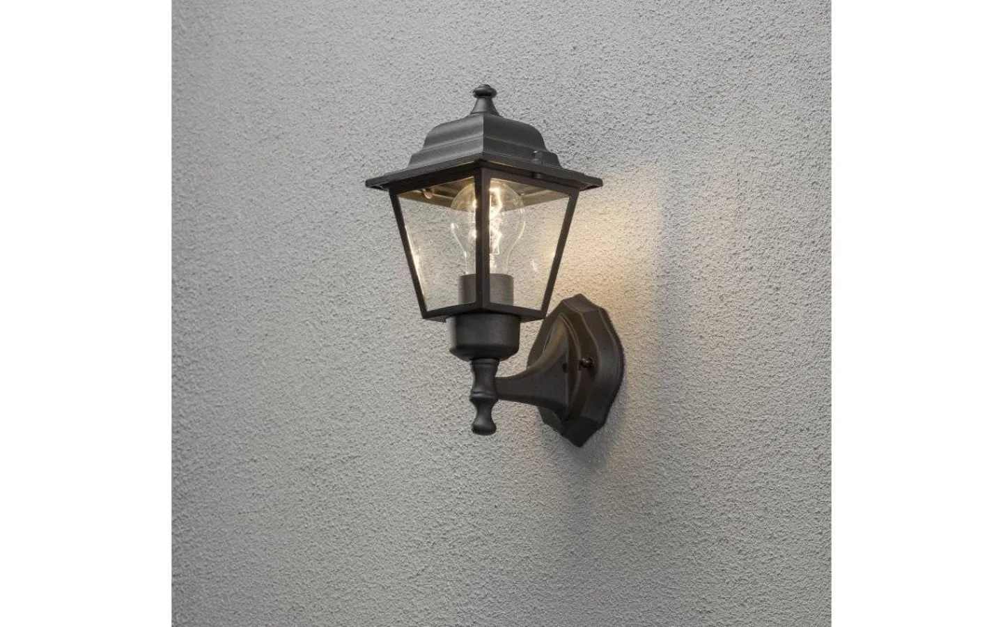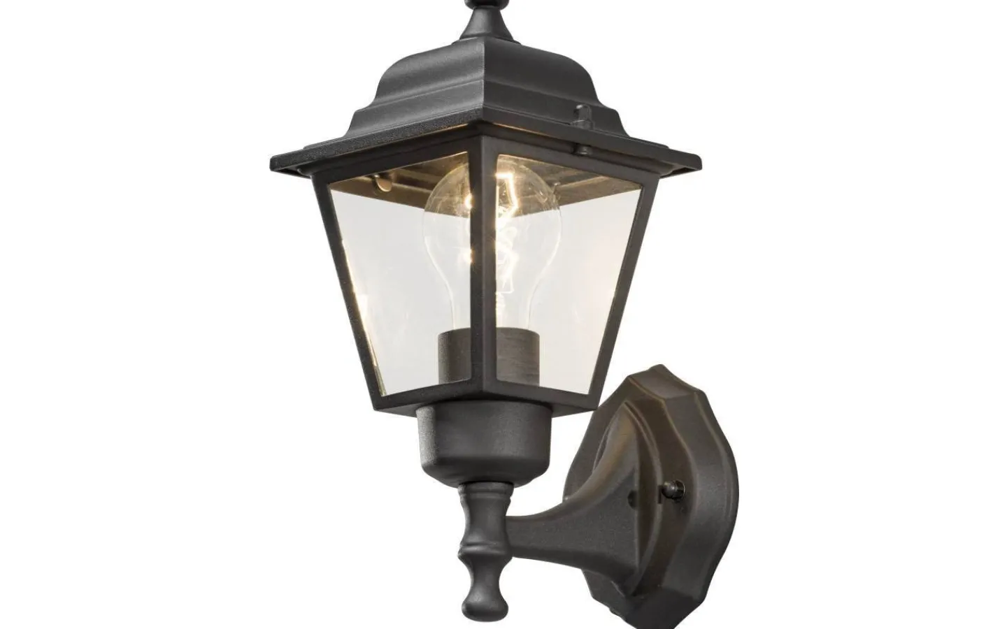 Denna stilfulla och elegenta vägglampa är gjord av aluminium och snyggt lackerad i svart med klart glas med ljusspridning både framåt, mot fasaden och åt sidorna.