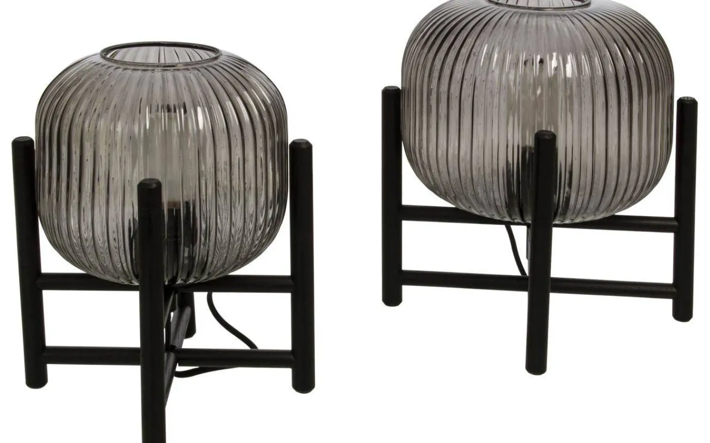 Vinda bordslampa i svart med sotad glasskärm. Materialet är trä i lampan och glas i skärmen. Max 40W,ljuskälla ingår ej. Strömbrytare på sladden och anslutning med kontakt. En fantastisk ljuspunkt som ger mysigt, varmt ljus.