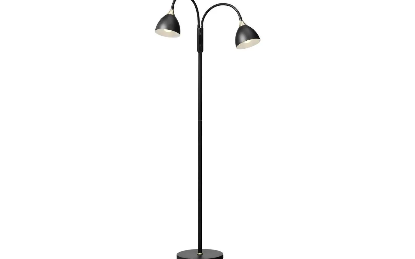 Läza golvlampa dubbel har riktbarta lamphuvud på flexarm så att du enkelt kan justera ljusriktningen efter eget önskemål. Denna golvlampa gör sig utmärkt som läslampa mellan två riktigt sköna fåtöljer!
