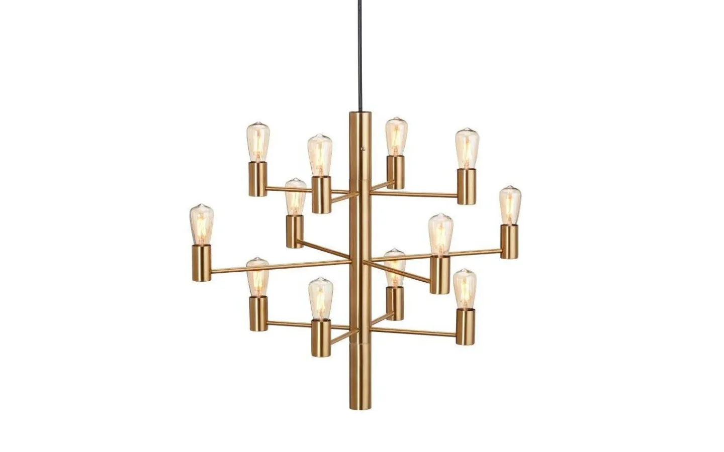 Supersnygg och modern takkrona i lyxig, dansk design från Herstal. Denna modell har tolv armar och är i matt satin mässing färg. Placera den över ditt matsalsbord eller låt den lysa upp ditt vardagsrum och få en riktigt härlig och iögonfallande inredningsdetalj i ditt hem!
