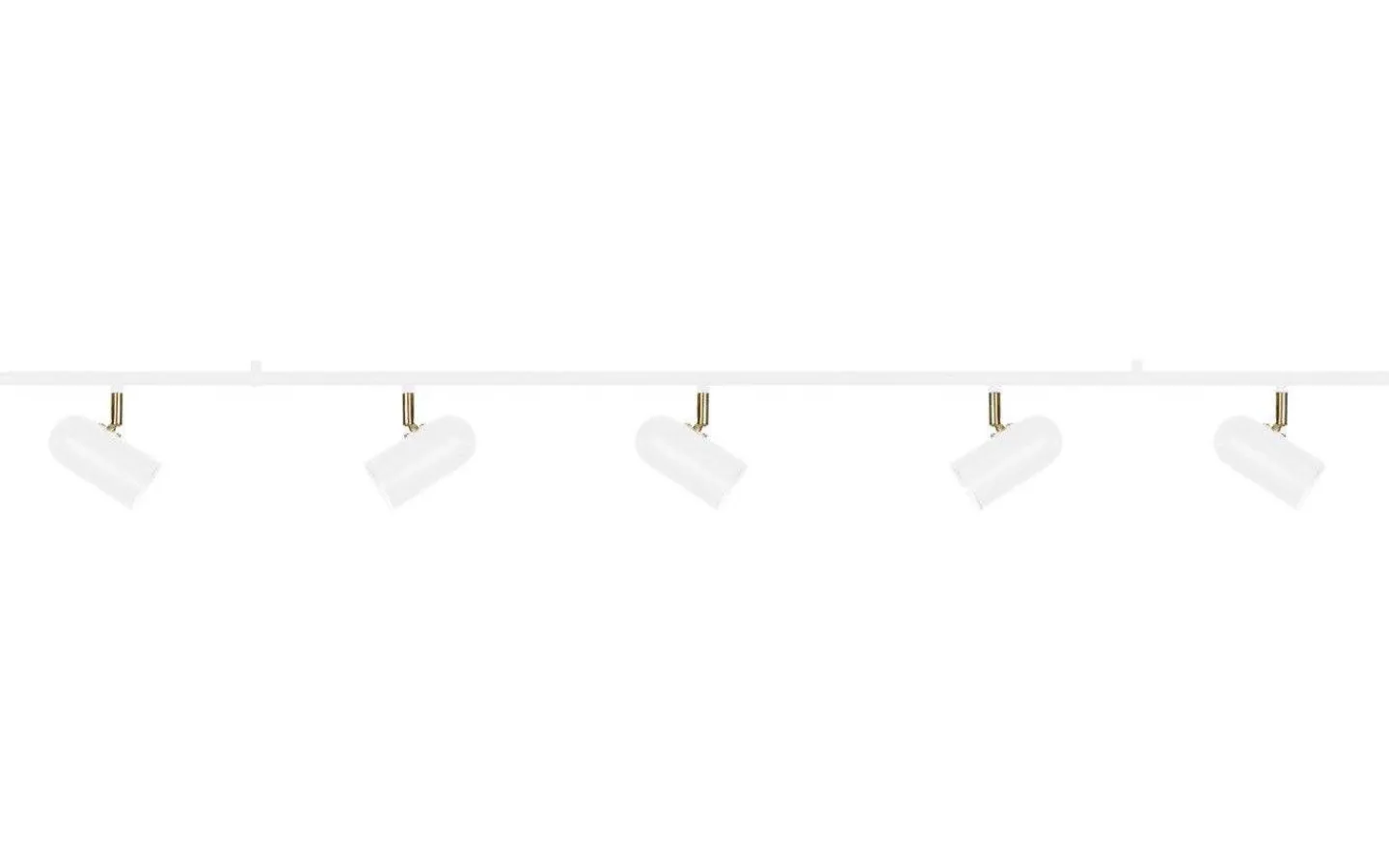 Swan är en funktionell spotlight med fem riktbara lamphuvuden, designad av formgivaren Malin Lundmark för välkända varumärket Globen Lighting. Lampan är gjord i vitlackerad metall med detaljer i borstad mässing. Denna armatur placeras på väggen eller i taket och passar perfekt för att belysa en tavel/fotovägg eller för att lysa upp en bokhylla.