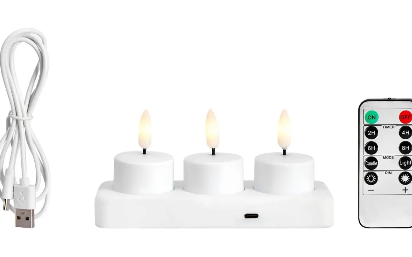 Fjärrstyrda LED värmeljus i 3-pack från Markslöjd. Uppladdningsbara värmeljus i plast. 2,4,6 och 8h timerfunktion. Ställbar ljuseffekt, konstant eller flamma. Konstant ljus i 4st dimbara steg. 1m vit USB-C sladd medföljer. Brytare under varje ljus.
