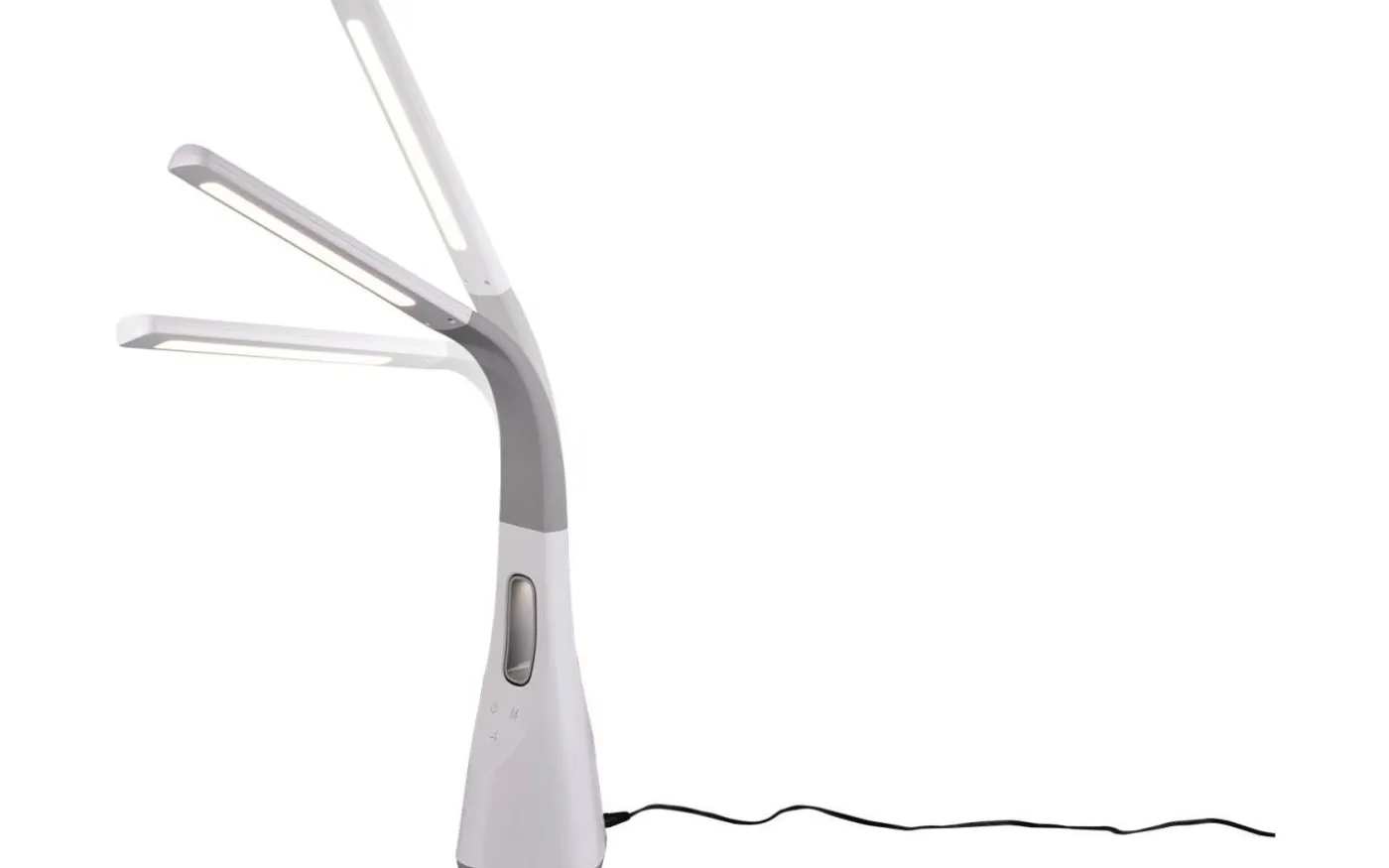 Håll huvudet kallt när du skriver, modellerar eller gör din deklaration! Den ultraflexibla VENTO LED-bordslampan med fläkt ger det bästa ljuset och en mild bris på begäran. Den eleganta basen innehåller en 3-växlad fläkt som använder innovativ teknik för att ge dig sval luft utan rotorblad! Lampan imponerar med 5 W ljusa LED-lampor och 500 lumen ljusstyrka: välj mellan varmvit, neutralvit eller dagsljusvit belysning, vars ljusstyrka kan dimmas med bara en knapptryckning. Gör det ljust och fräscha upp dig samtidigt! Lampan har också en USB-anslutning och en flexibel lamphals. Den enfärgade vita kroppen är en riktig allrounder som kan kombineras var som helst. Dessutom har armaturerna modern LED-teknik, vilket står för hög ljuskvalitet. LED-ljuskällor kännetecknas av lång livslängd och låg värmeutveckling. Ljuskälla: inklusive 1x SMD, 5W · 1x 650 lm, 3000K. Extra information: 3 hastighetslägen, 4-nivå pekfunktion, justerbar ljusfärg, flexibel, IP20, ej dimbar, laddningsbar USB-anslutning, laddningsbar USB-C-anslutning, fläkt