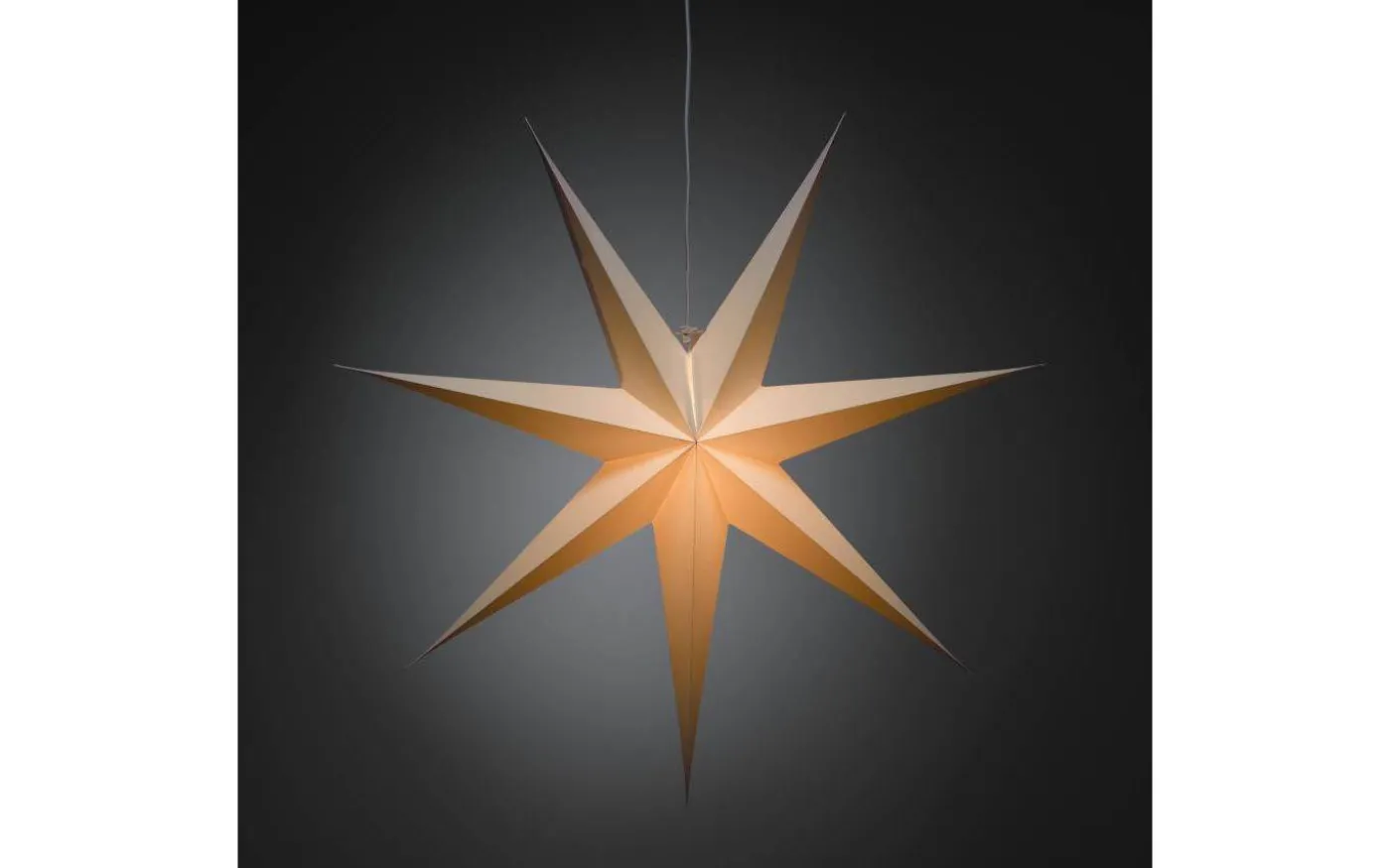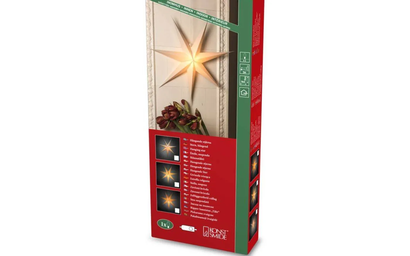 Vera julstjärna från Konstsmide är en vacker julstjärna i papp. Julstjärnan levereras med en 5 meter lång anslutningskabel med strömbrytare och stickkontakt för vägguttag.
