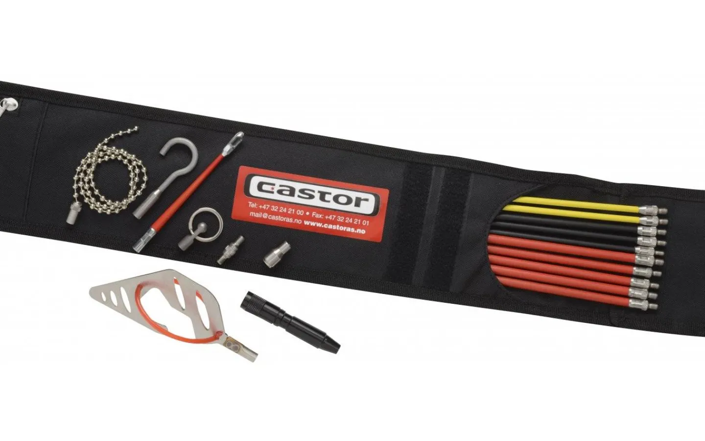Komplett set för hjälp med kabel- och rördragning. Idealisk för att ”fiska” i väggar, kabeldragning på stegar, samt ovan undertak, etc.