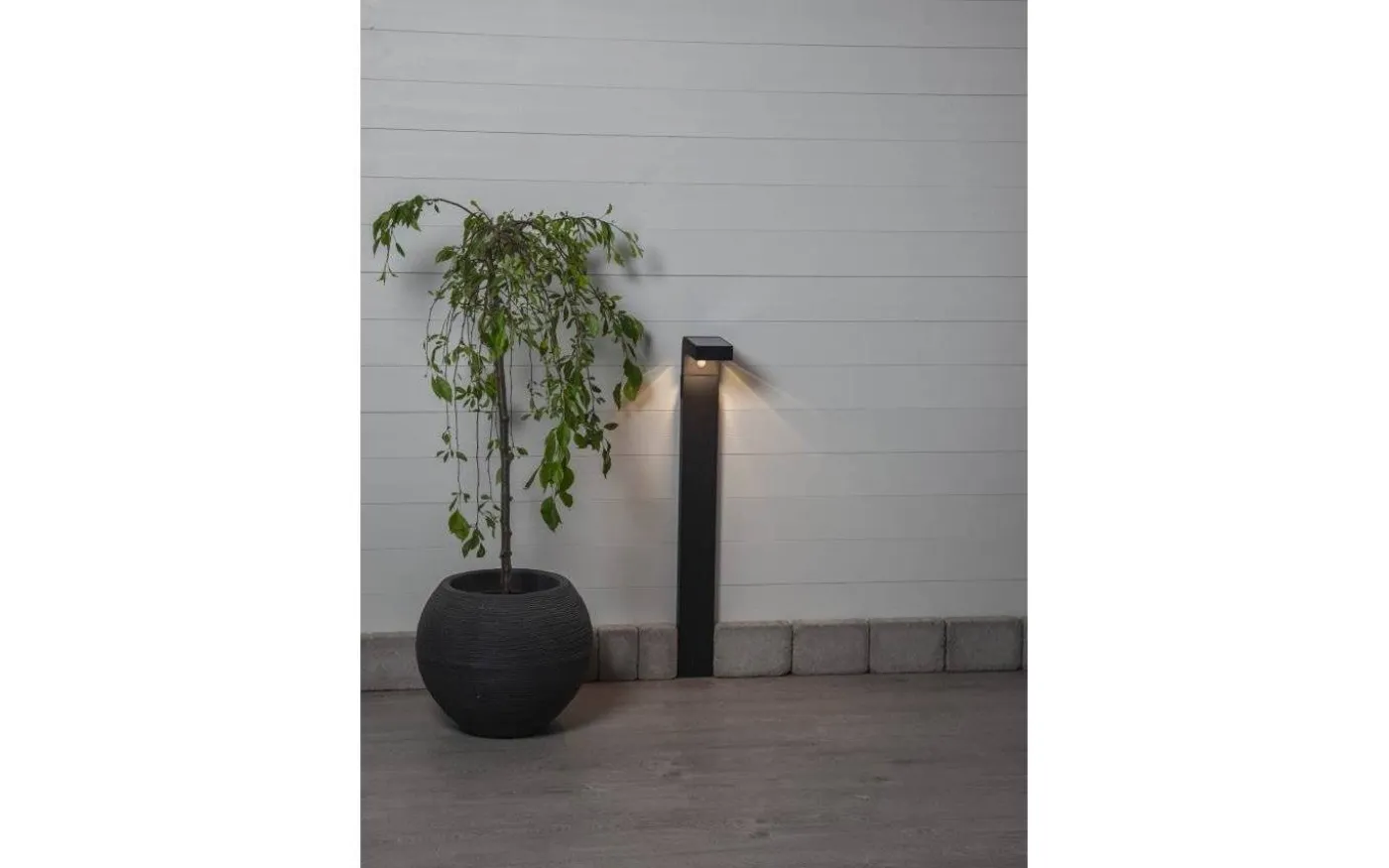 Vici är en solcellsdriven pollare i svart aluminium, från varumärket Star Trading. Med sin höjd på 80cm och nedåtriktade ljussken blir Vici en stilren solcellslampa att belysa en trädgårdsgång eller en blomsterrabatt under årets solrika månader.