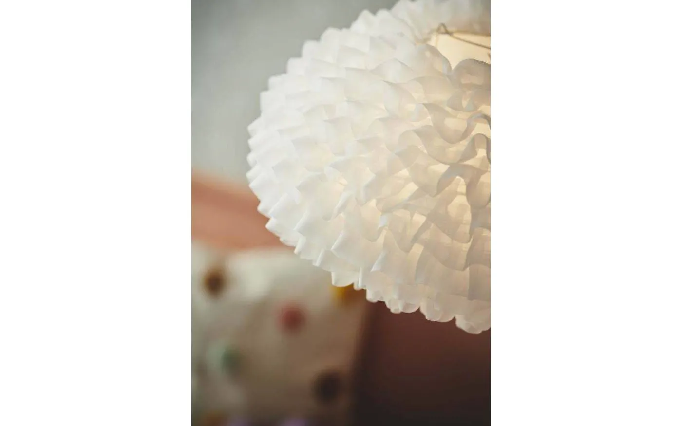 Villo takskärm från Nordlux är en rispapperlampa med chiffong tyg. Takskärmen har ett mycket lätt och luftigt utseende som sprider ett mjukt och diffust ljus i rummet. Med denna takskärm skapar du enkelt en mysig stämning var du än placerar den!