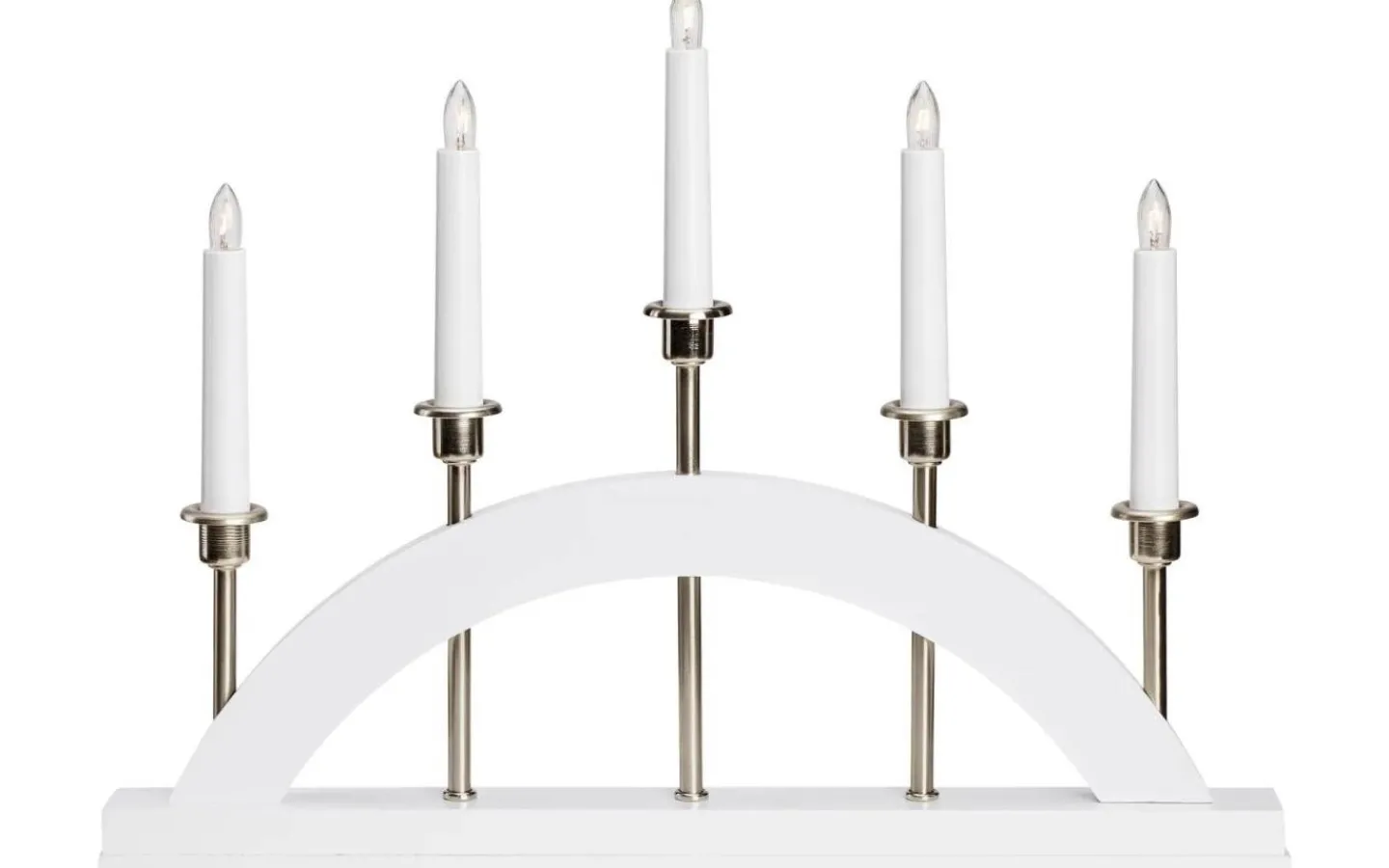 Bridge Adventsljusstake från välkända Markslöjd, är 5-armad träljusstake i bågform med antikfärgade detaljer. En perfekt adventsljusstake som är tidlös i sin design och har en bredd på 47cm och höjd på 36cm.