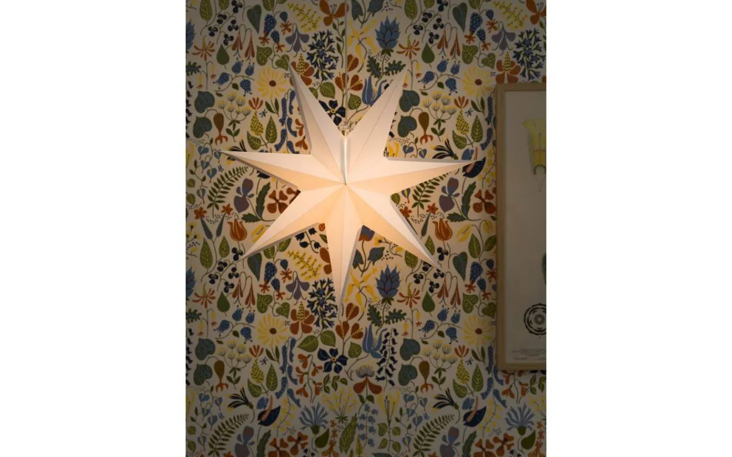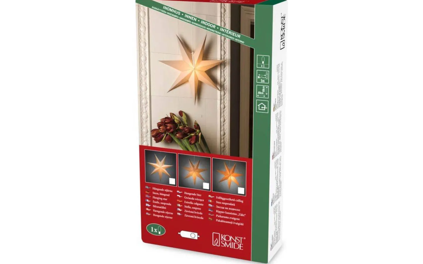 Vera julstjärna från Konstsmide är en vacker julstjärna i papp. Julstjärnan levereras med en 5 meter lång anslutningskabel med strömbrytare och stickkontakt för vägguttag.