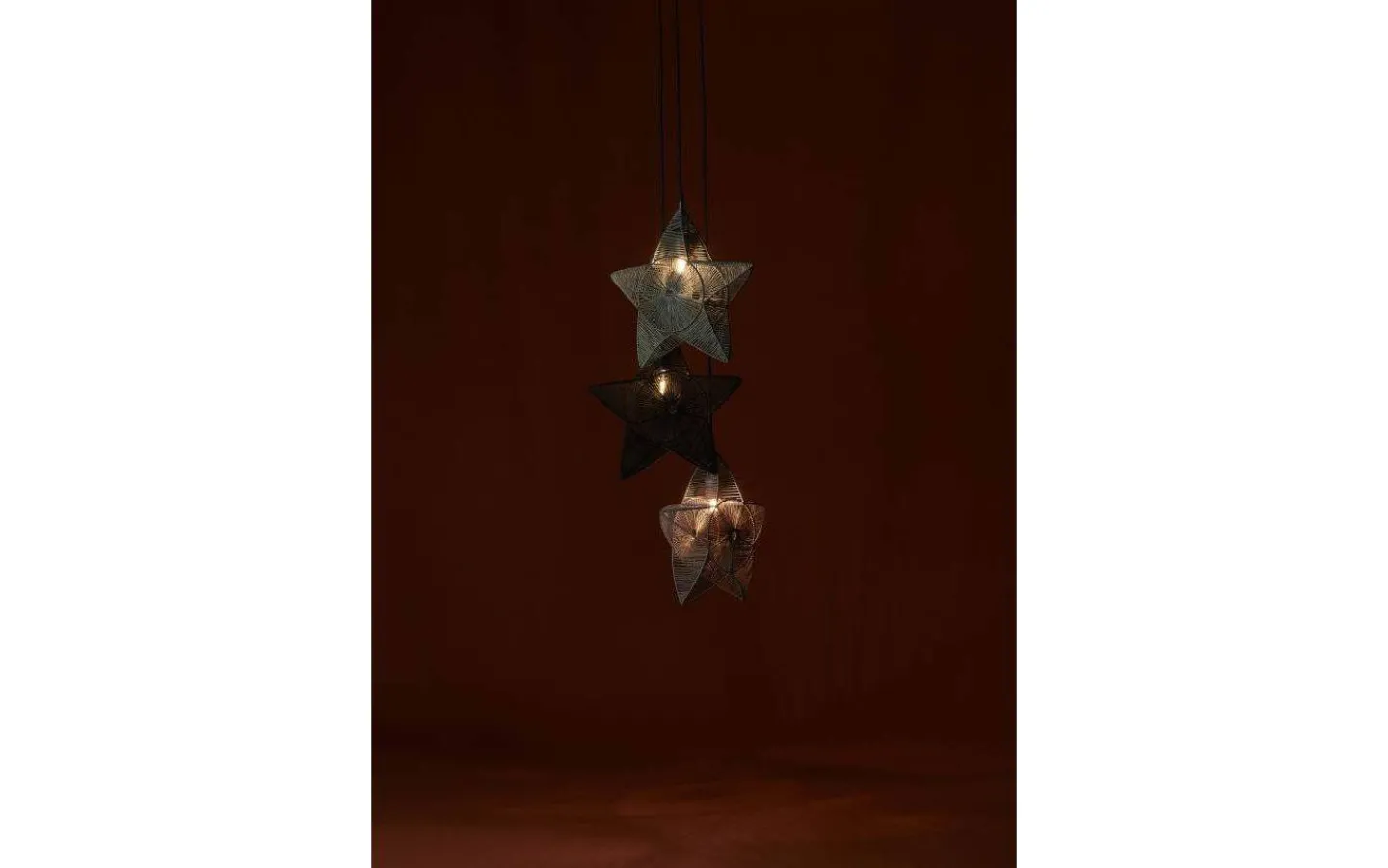 Regina hängande adventsstjärna med en ram av metall som virats in i garn för hand. En modern geometrisk form som passar den skandinaviska stilen. Sprider ett fint ljus och skapar en härlig julstämning i hemmet.