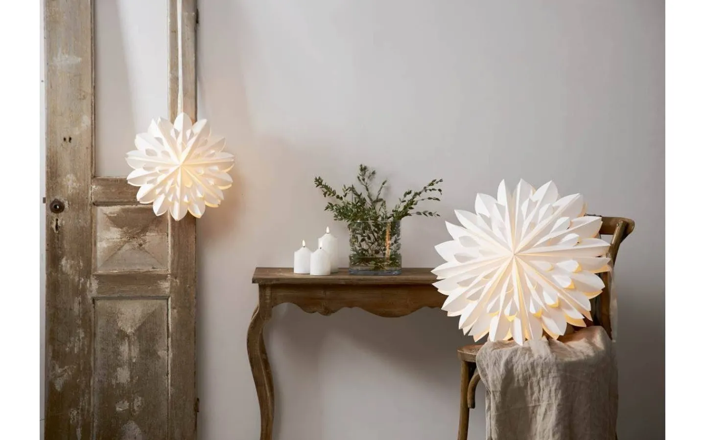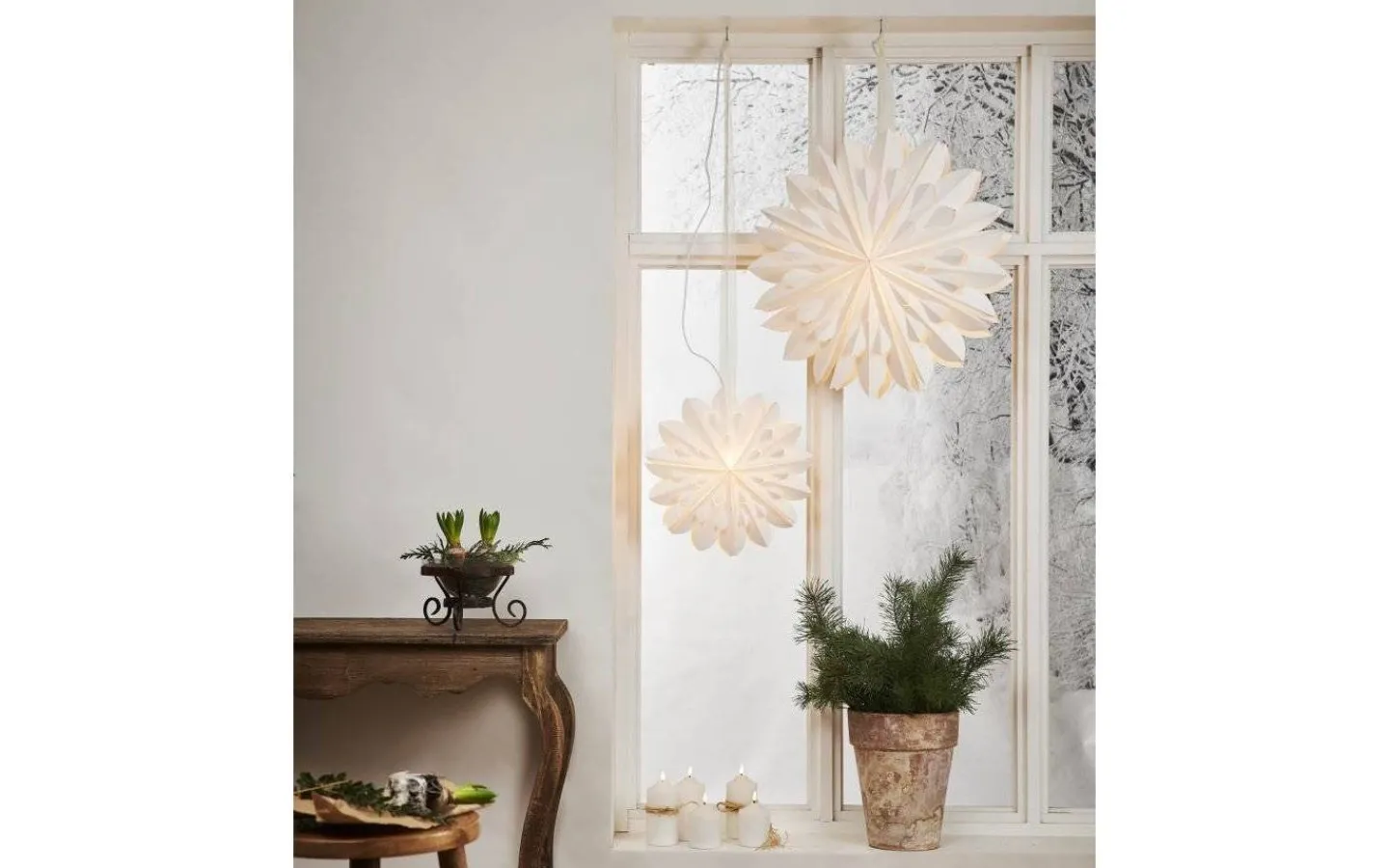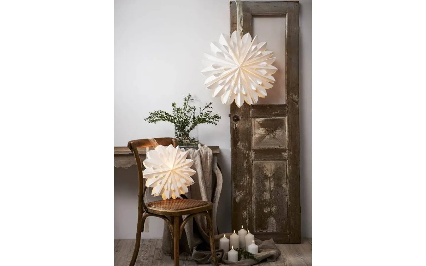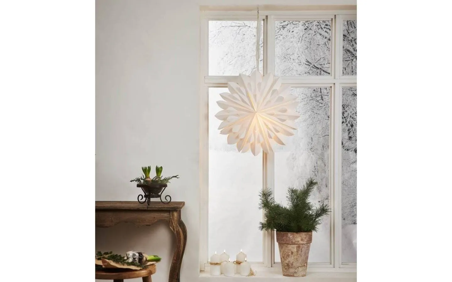Clipp julstjärna är en vacker vit pappersstjärna från välkända Star Trading. Julstjärnan kommer med ett fint band för upphäng och gör sig bra både med eller utan belysning. Stjärnan sprider en härlig stämning och ger hemmet den där speciella julkänslan.