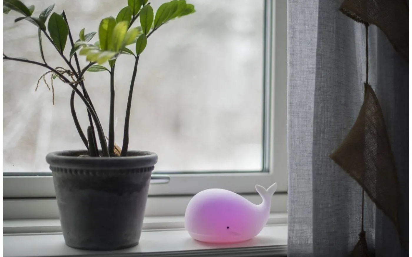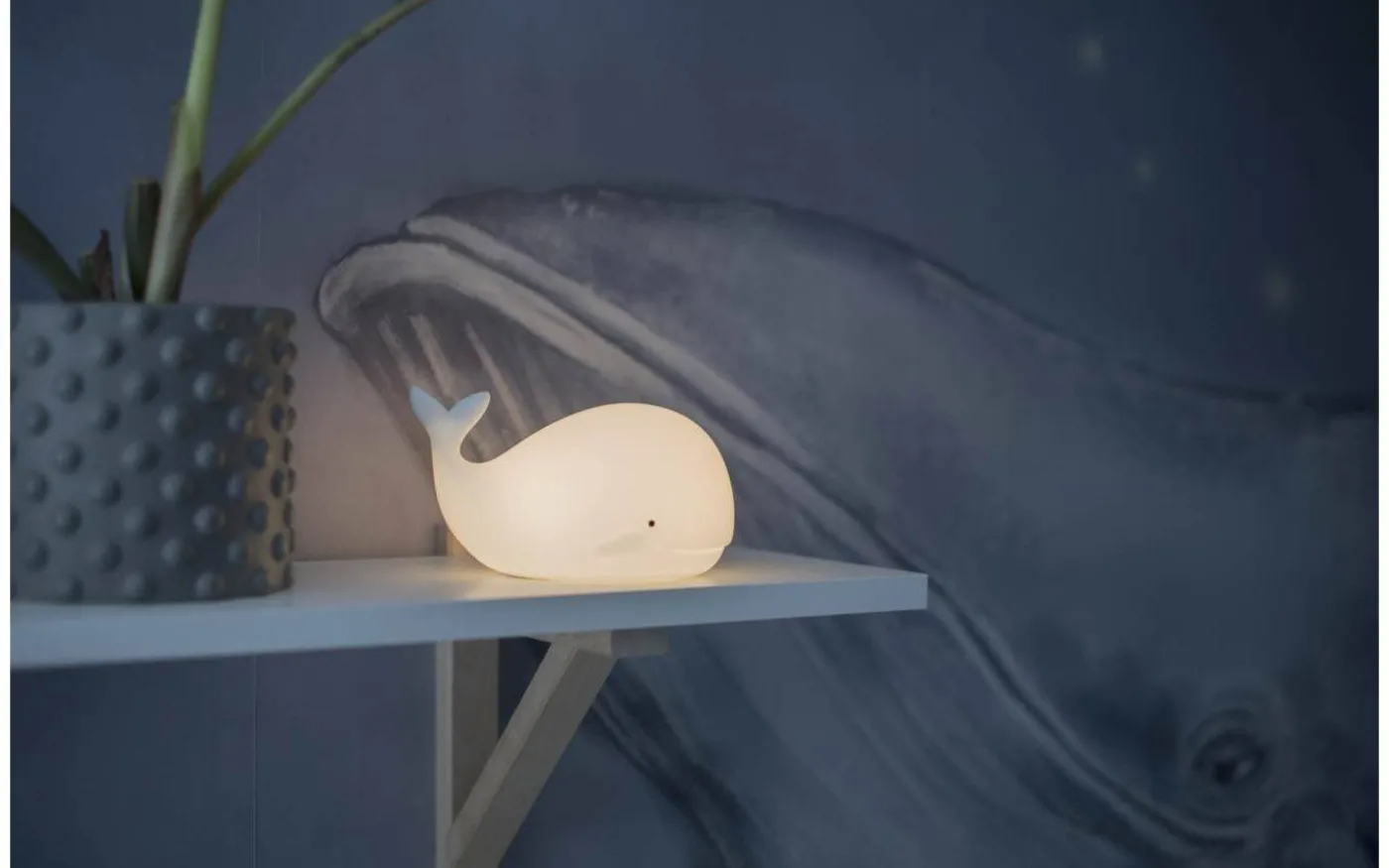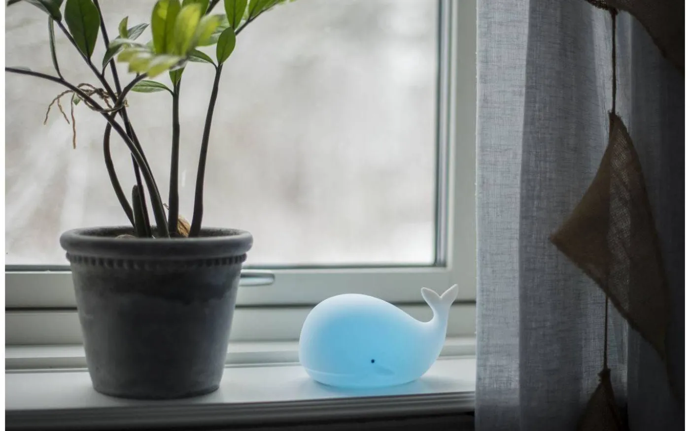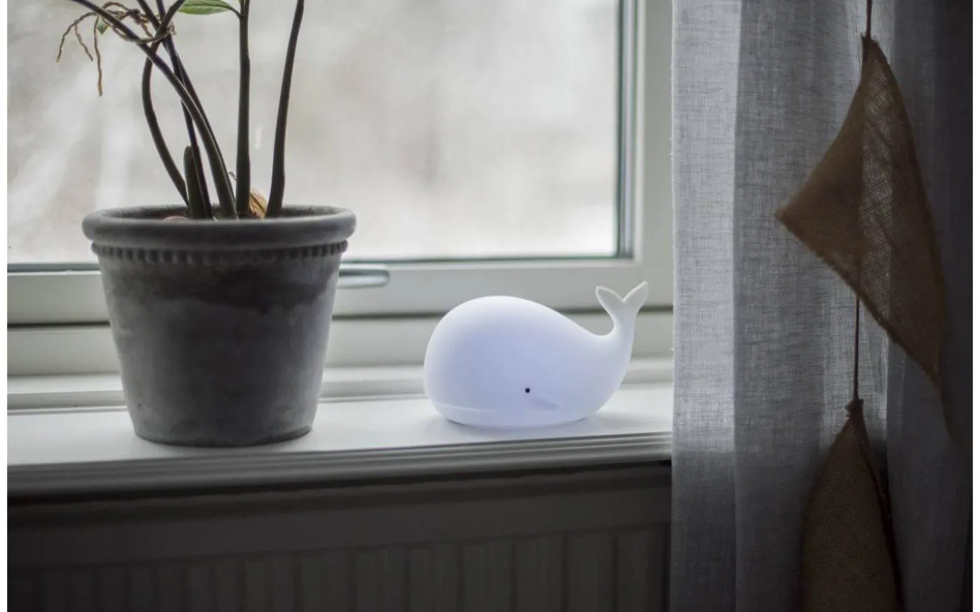 Whale batteridriven nattlampa från Star Trading är en härlig nattlampa i form av en val. Med hjälp av en lätt klapp på valen kan du välja mellan olika härliga färger. Whale nattlampa har inbyggd timerfunktion vilket innebär att lampa släcks efter 1-2 timmar om ingen rör sig.