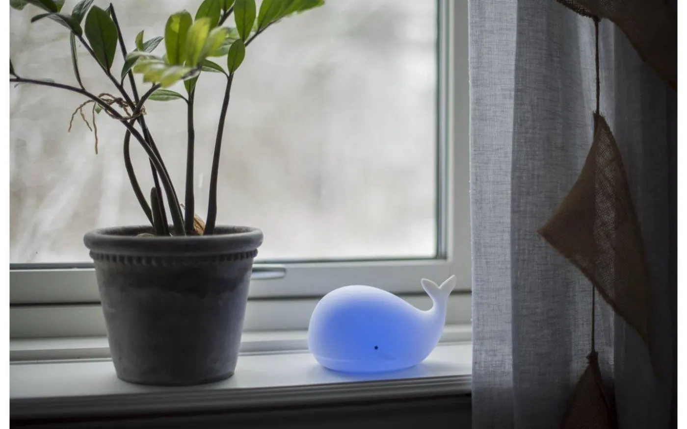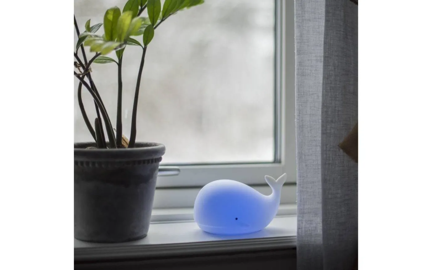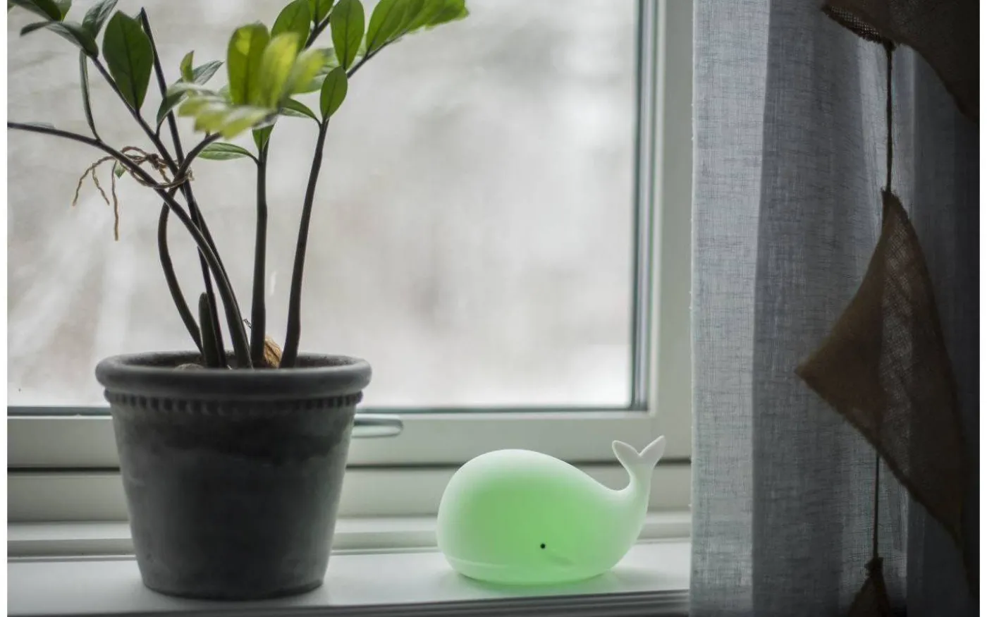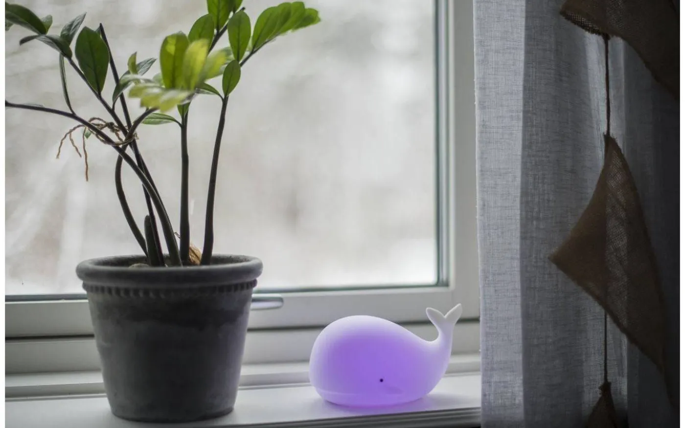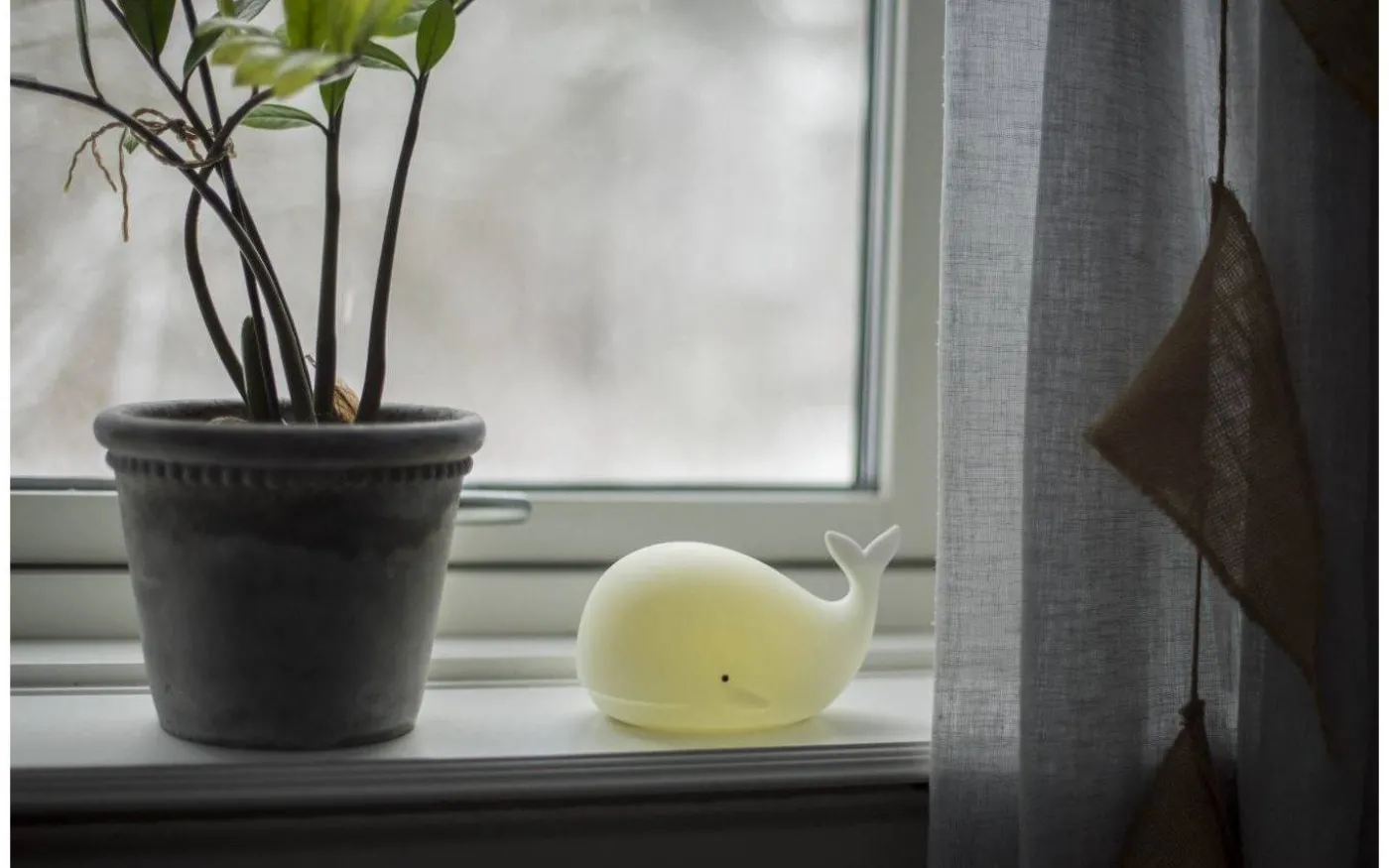 Whale batteridriven nattlampa från Star Trading är en härlig nattlampa i form av en val. Med hjälp av en lätt klapp på valen kan du välja mellan olika härliga färger. Whale nattlampa har inbyggd timerfunktion vilket innebär att lampa släcks efter 1-2 timmar om ingen rör sig.