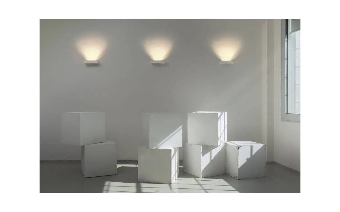 Vägglampa av gips som kan målas med vanlig väggfärg.