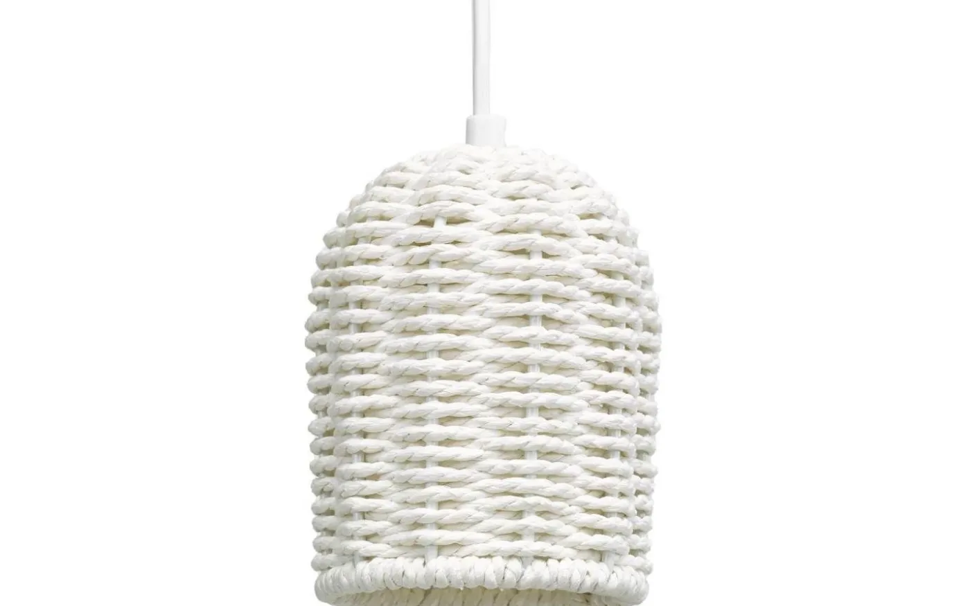 Zoe från Oriva är en fönsterlampa med en skärm tillverkad av flätat naturmaterial. Designen har en kupolformad skärm med ett tätt vävt mönster som ger en mjuk och naturlig känsla.