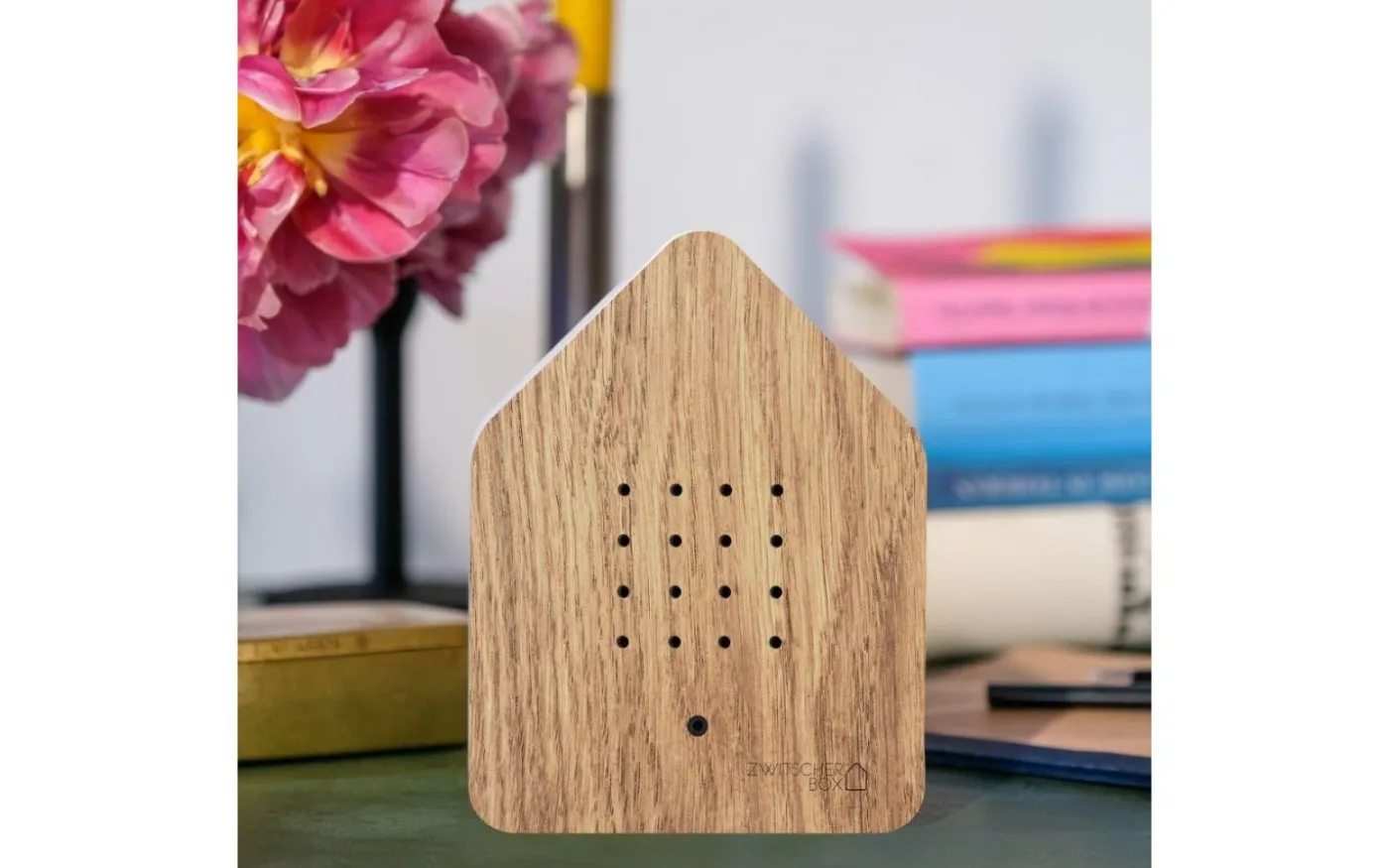 Speldosa. Färg: Natur Ek. Mått: Längd 11 cm Bredd 3,50 cm Höjd 14,50 cm. Material: Trä, HIPS Plast. Unna dig själv en avkopplande fågelkonsert. De naturliga ljuden från speldosan skapar en atmosfär som får dig att slappna av. Fågelkvittret låter oss att dyka in i en värld utan stress och tidspress. Vi andas och varvar ner, likt en promenad i skogen när vi lyssnar på fågelsång. Det är hälsosamt för kropp och själ! Du aktiverar fågelkonserten när du passerar den och om ingen ny impuls följer tonar den ut efter två minuter. Oavsett om du har den hemma eller på kontoret, i badrummet eller i hallen kan du placera din speldosa var som helst eller hänga upp den på väggen. Perfekt för: badrum, gästtoalett, entré, korridor, kontor. Ljud: koltrastens fågelsångLjudlängd: 2 minuterTeknik: aktiveras av en rörelsesensor (reagerar på förändringar i ljuset)Batteri: 3 AA-batterier ingårMaterial: yta: trä, kropp: HIPS plastMått: Längd 11 cm Bredd 3,50 cm Höjd 14,50 cm