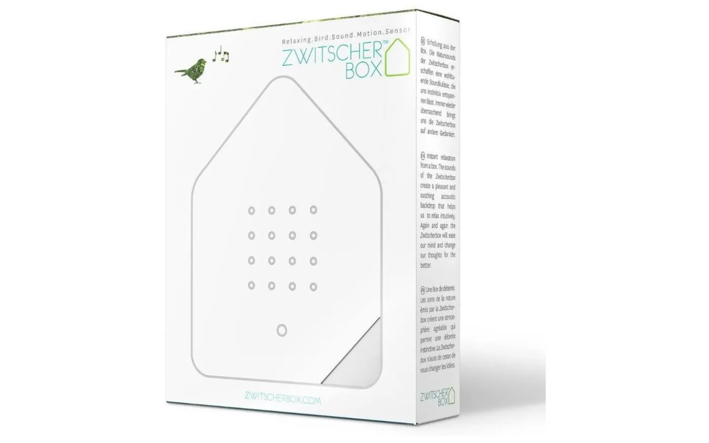 Speldosa. Färg: Vit. Mått: Längd 11 cm Bredd 3,50 cm Höjd 14,50 cm. Material: Plexiglas, HIPS Plast. Unna dig själv en avkopplande fågelkonsert. De naturliga ljuden från speldosan skapar en atmosfär som får dig att slappna av. Fågelkvittret låter oss att dyka in i en värld utan stress och tidspress. Vi andas och varvar ner, likt en promenad i skogen när vi lyssnar på fågelsång. Det är hälsosamt för kropp och själ! Du aktiverar fågelkonserten när du passerar den och om ingen ny impuls följer tonar den ut efter två minuter. Oavsett om du har den hemma eller på kontoret, i badrummet eller i hallen kan du placera din speldosa var som helst eller hänga upp den på väggen. Perfekt för: badrum, gästtoalett, entré, korridor, kontor. Ljud: koltrastens fågelsångLjudlängd: 2 minuterTeknik: aktiveras av en rörelsesensor (reagerar på förändringar i ljuset)Batteri: 3 AA-batterier ingårMaterial: yta: plexiglas, kropp: HIPS plastMått: Längd 11 cm Bredd 3,50 cm Höjd 14,50 cm